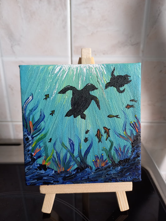 Πίνακας σε καμβά 10x10εκ. - SEA TURTLES