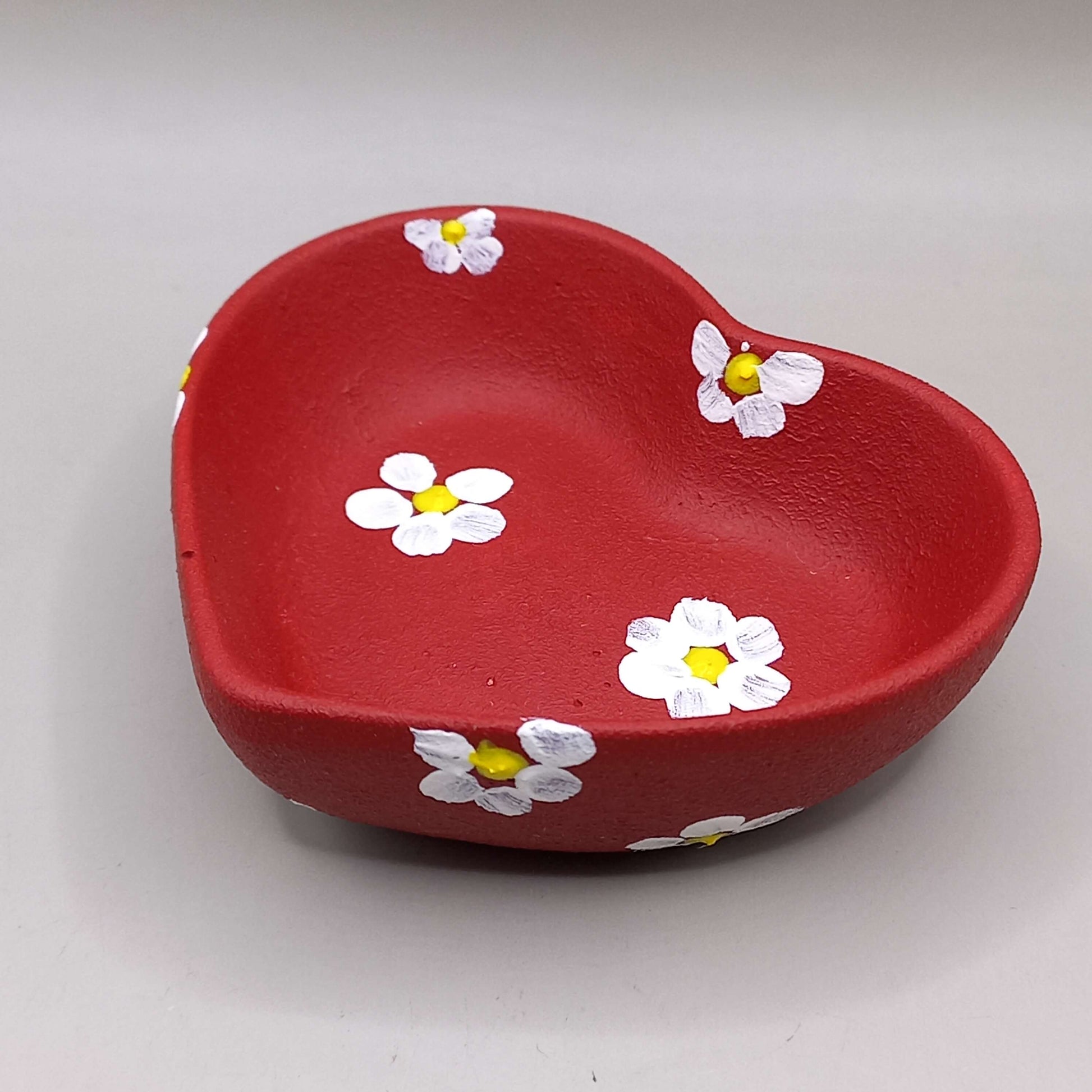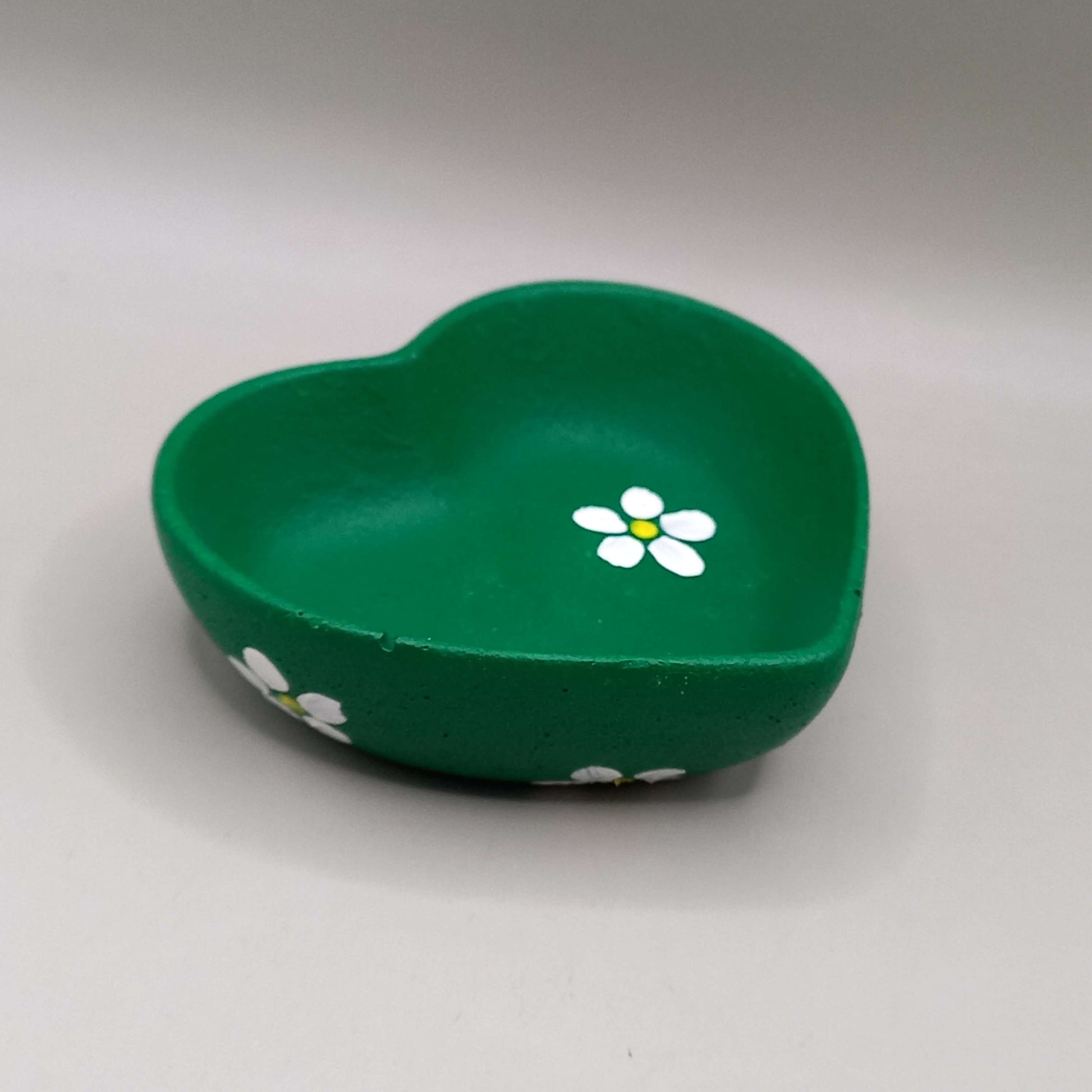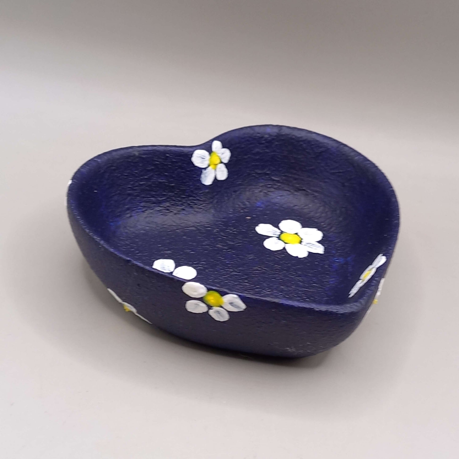 Χειροποίητο τσιμεντένιο μπoλάκι σε σχήμα καρδιάς. Μονόχρωμο, με ζωγραφισμένες μαργαρίτες.