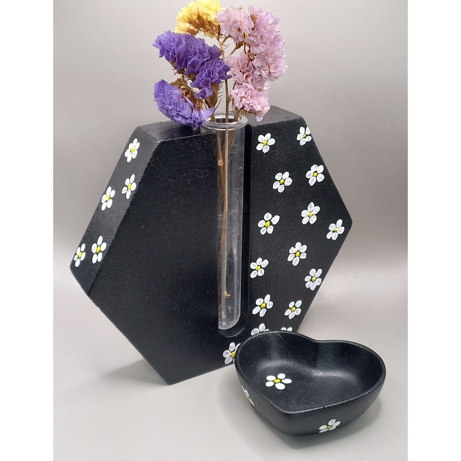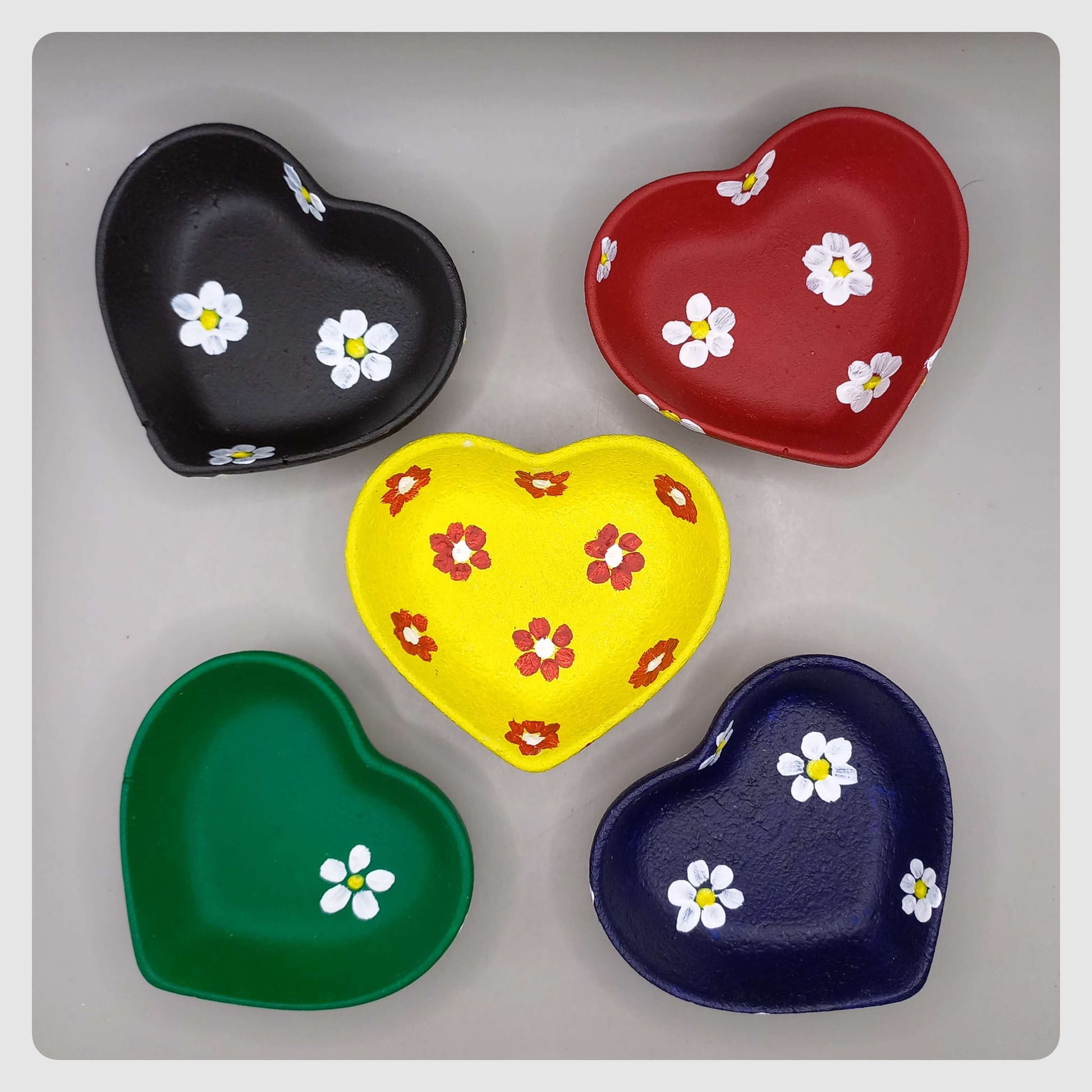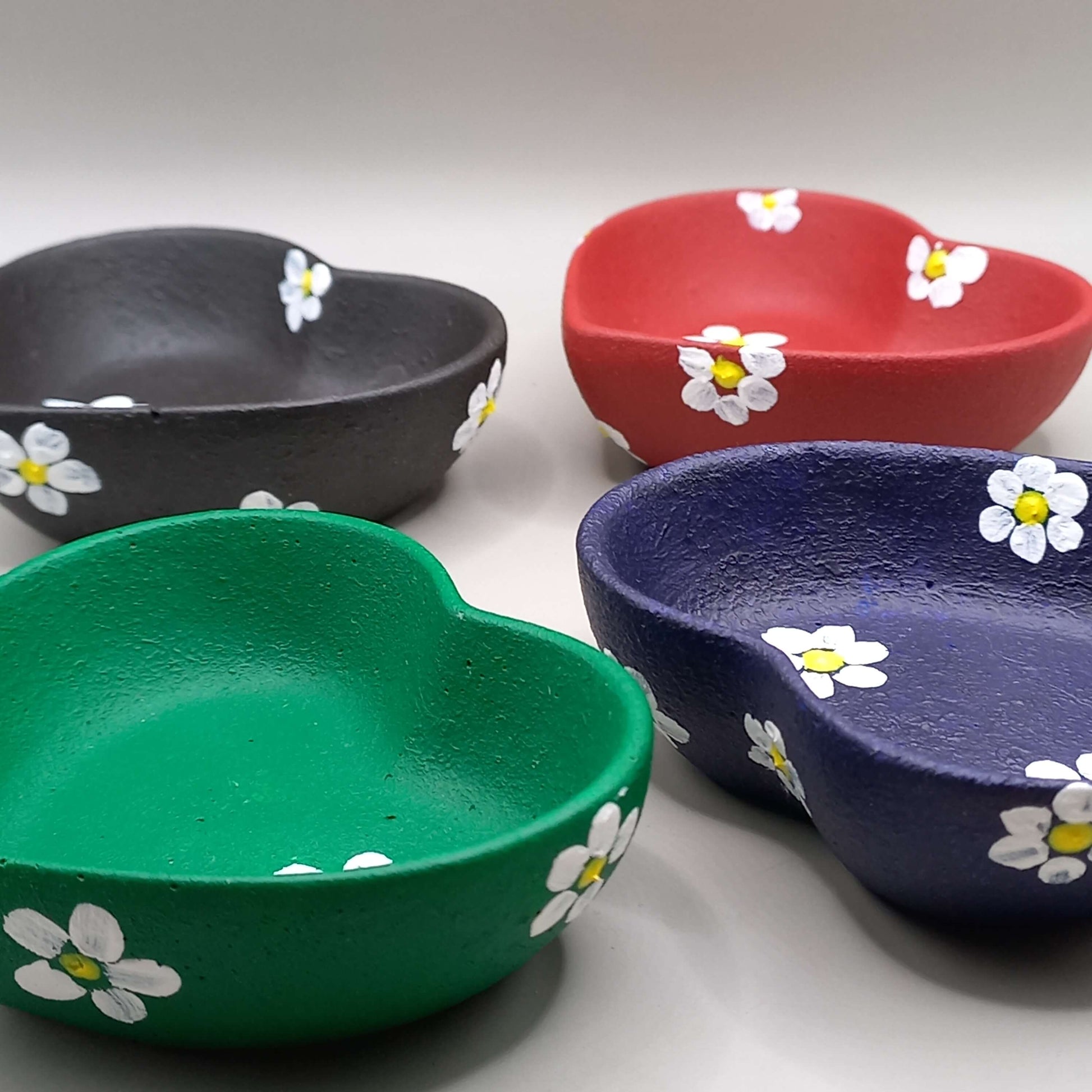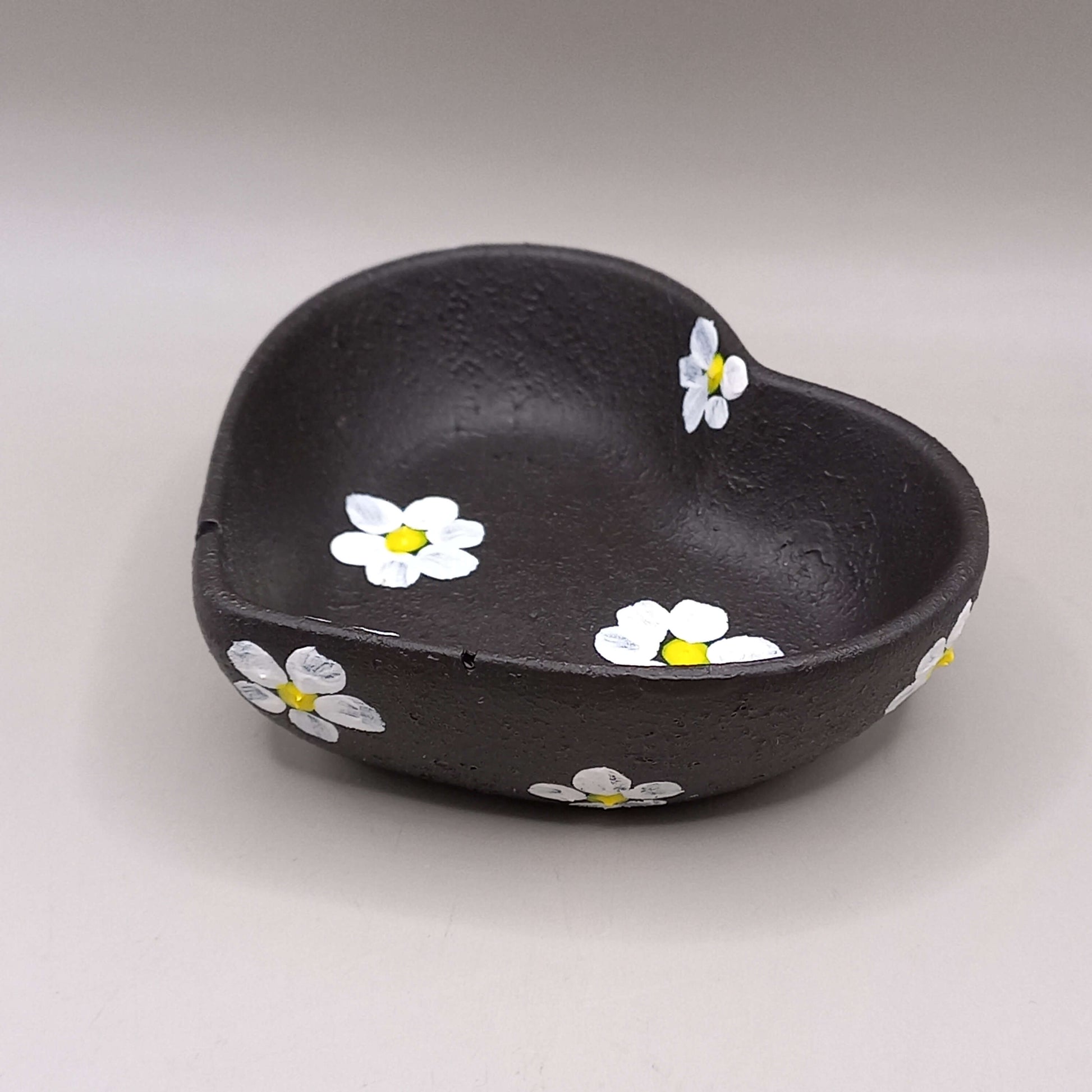 Χειροποίητο τσιμεντένιο μπoλάκι σε σχήμα καρδιάς. Μονόχρωμο, με ζωγραφισμένες μαργαρίτες.