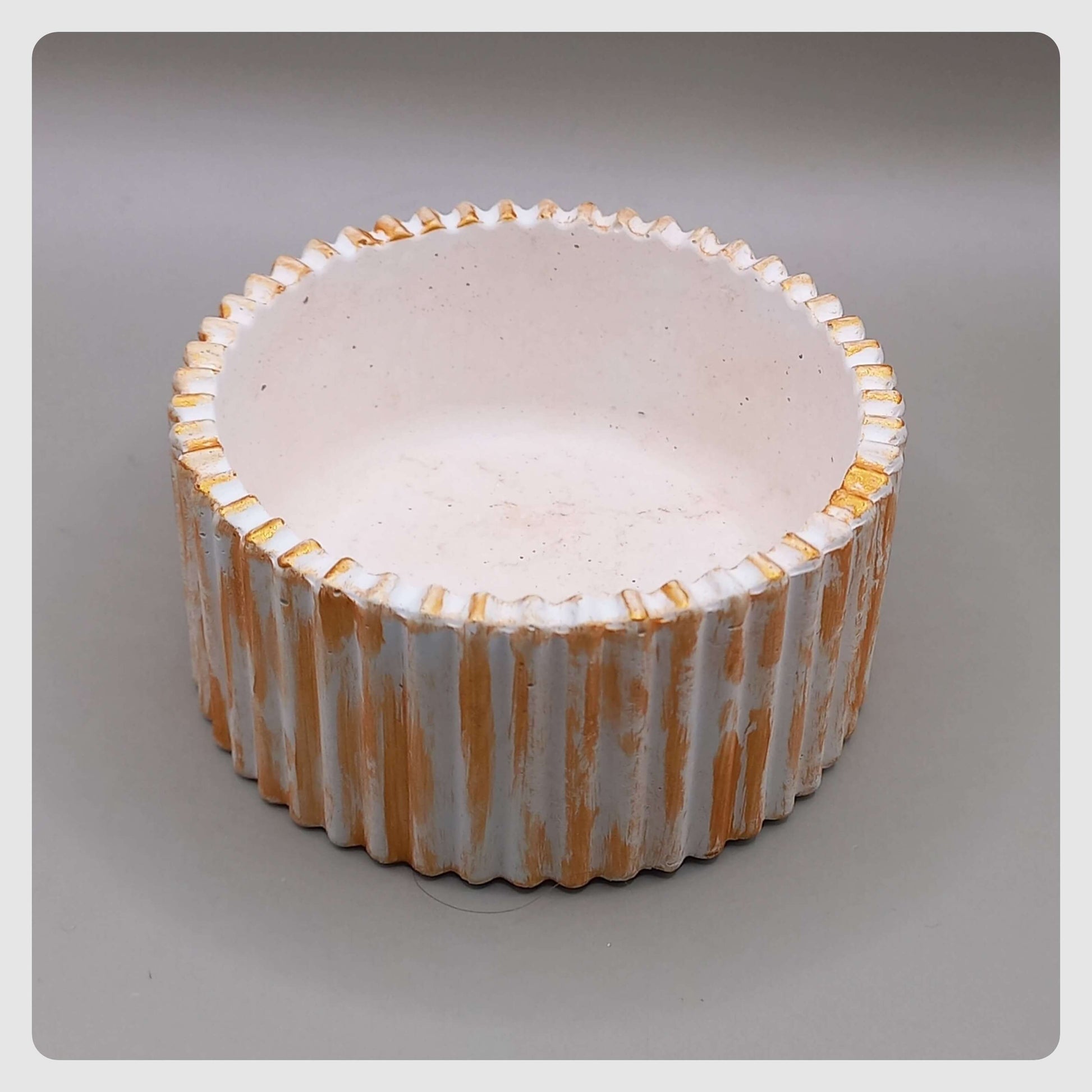 Τσιμεντένιο ραβδωτό μπωλ, σε λευκό/χρυσό χρώμα.