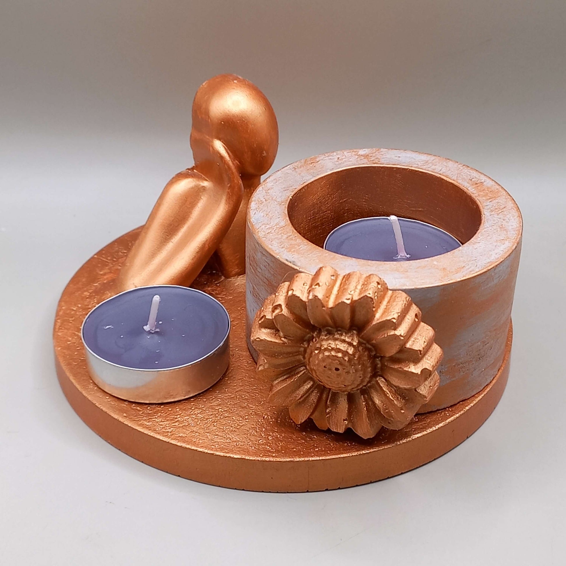Χειροποίητο τσιμεντένιο κασπώ, στρογγυλό, σε γκρι/χάλκινο.