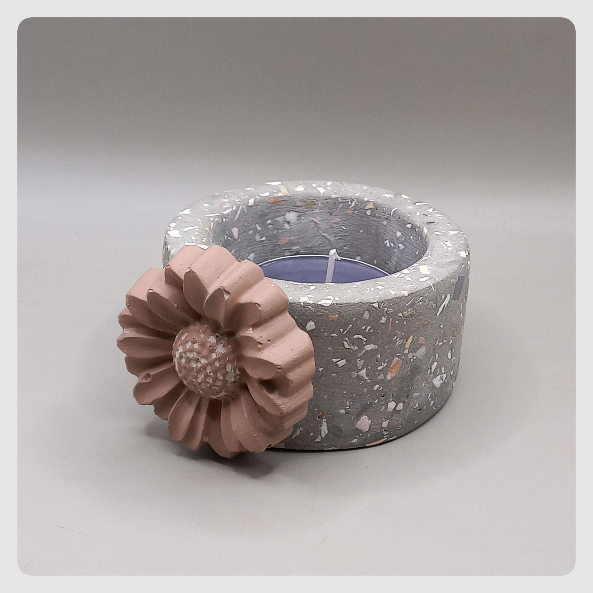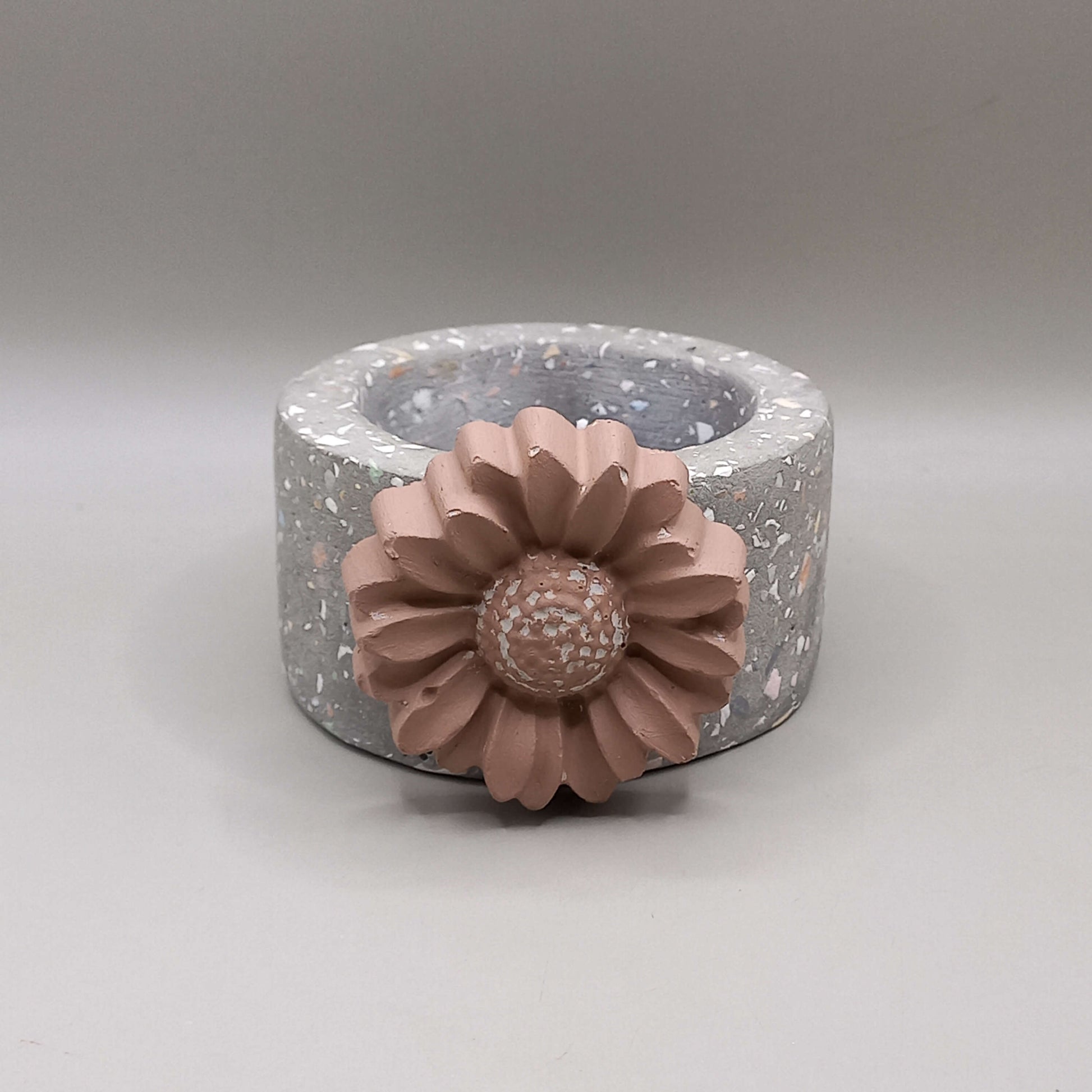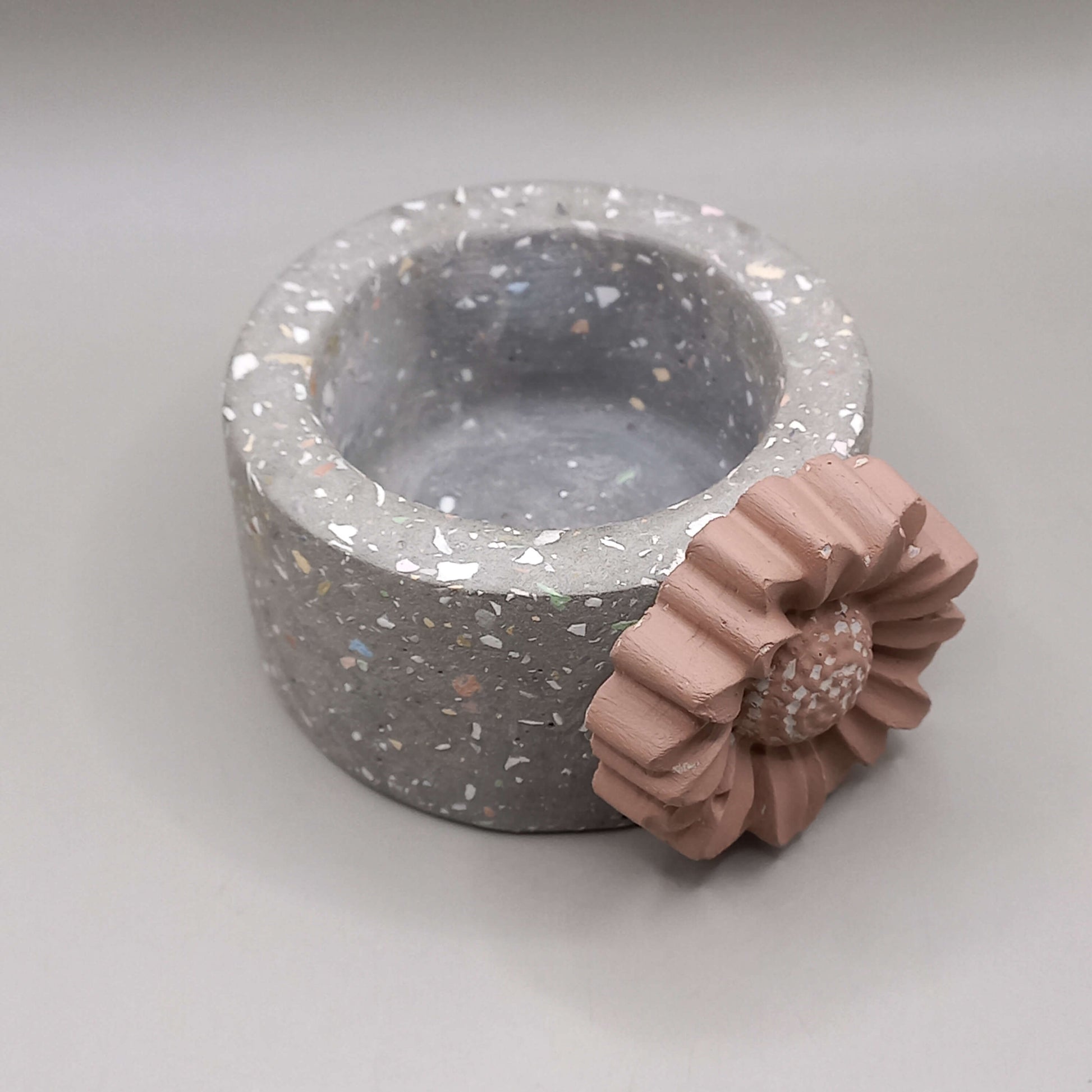 Χειροποίητο τσιμεντένιο κασπώ, στρογγυλό, σε γκρι/μπεζ.