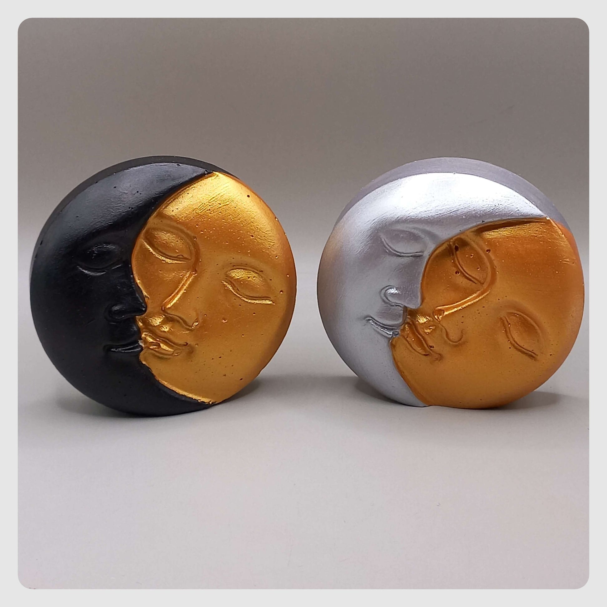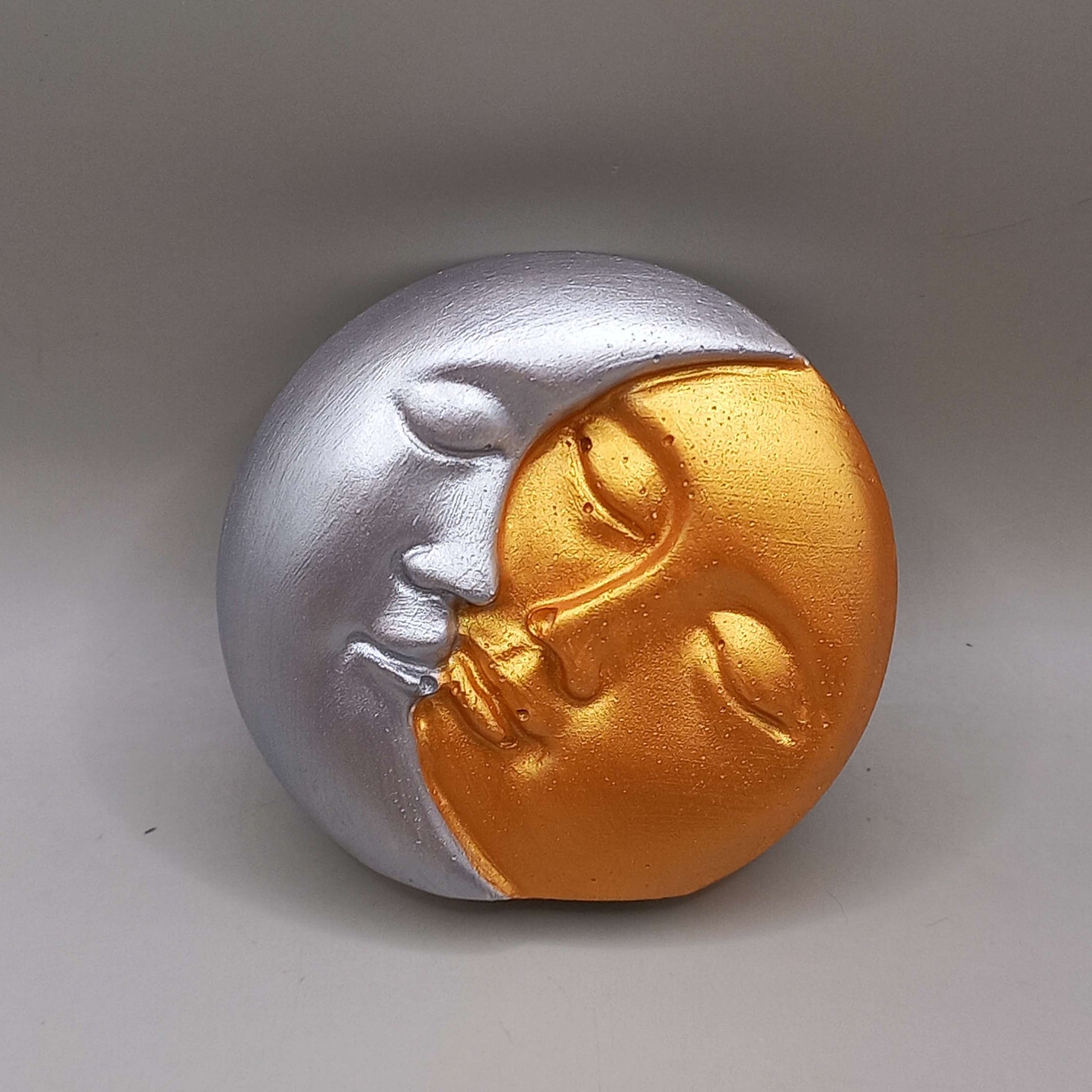 Χειροποίητο τσιμεντένιο διακοσμητικό φεγγάρι/ήλιος, δίχρωμο.