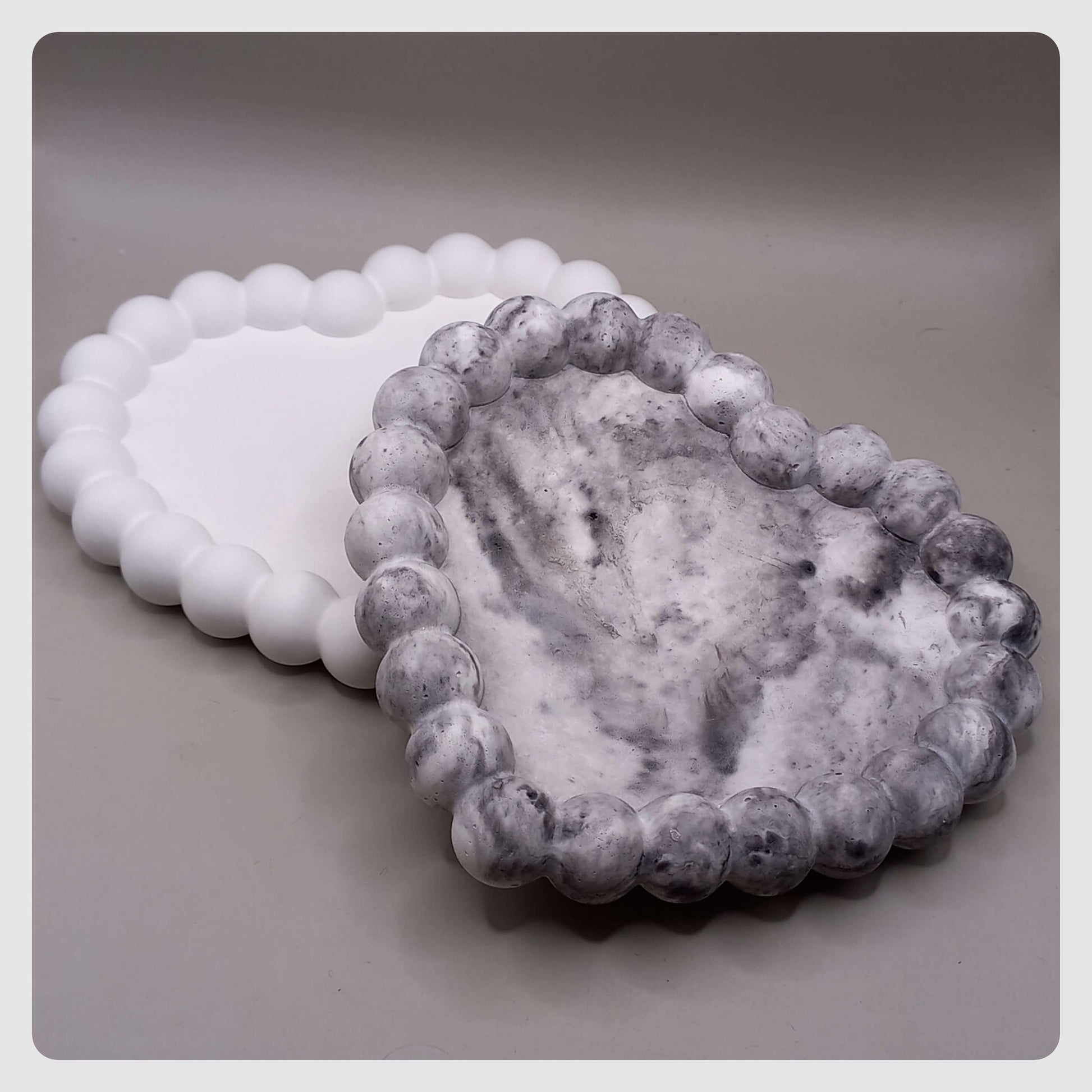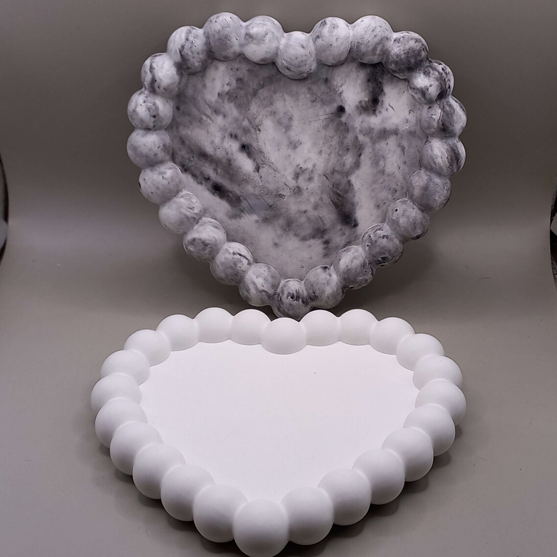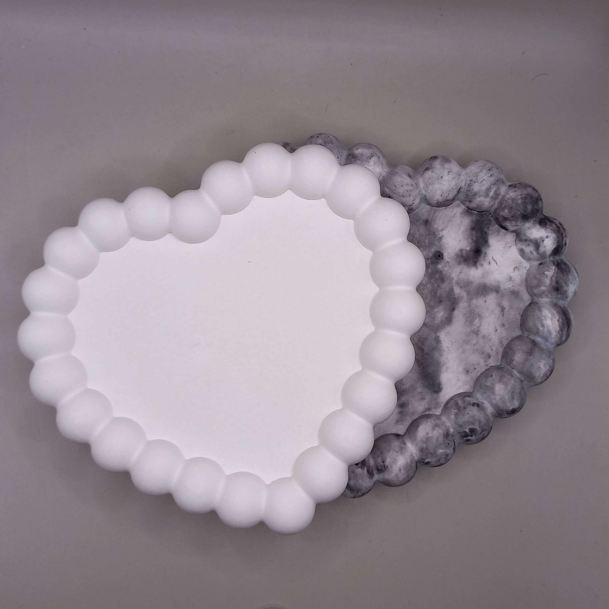 Χειροποίητα τσιμεντένια σουβέρ σε σχήμα καρδιάς (σετ 2τμχ), σε χρώμα λευκό & εφέ μαρμάρου (λευκό/μαύρο).
