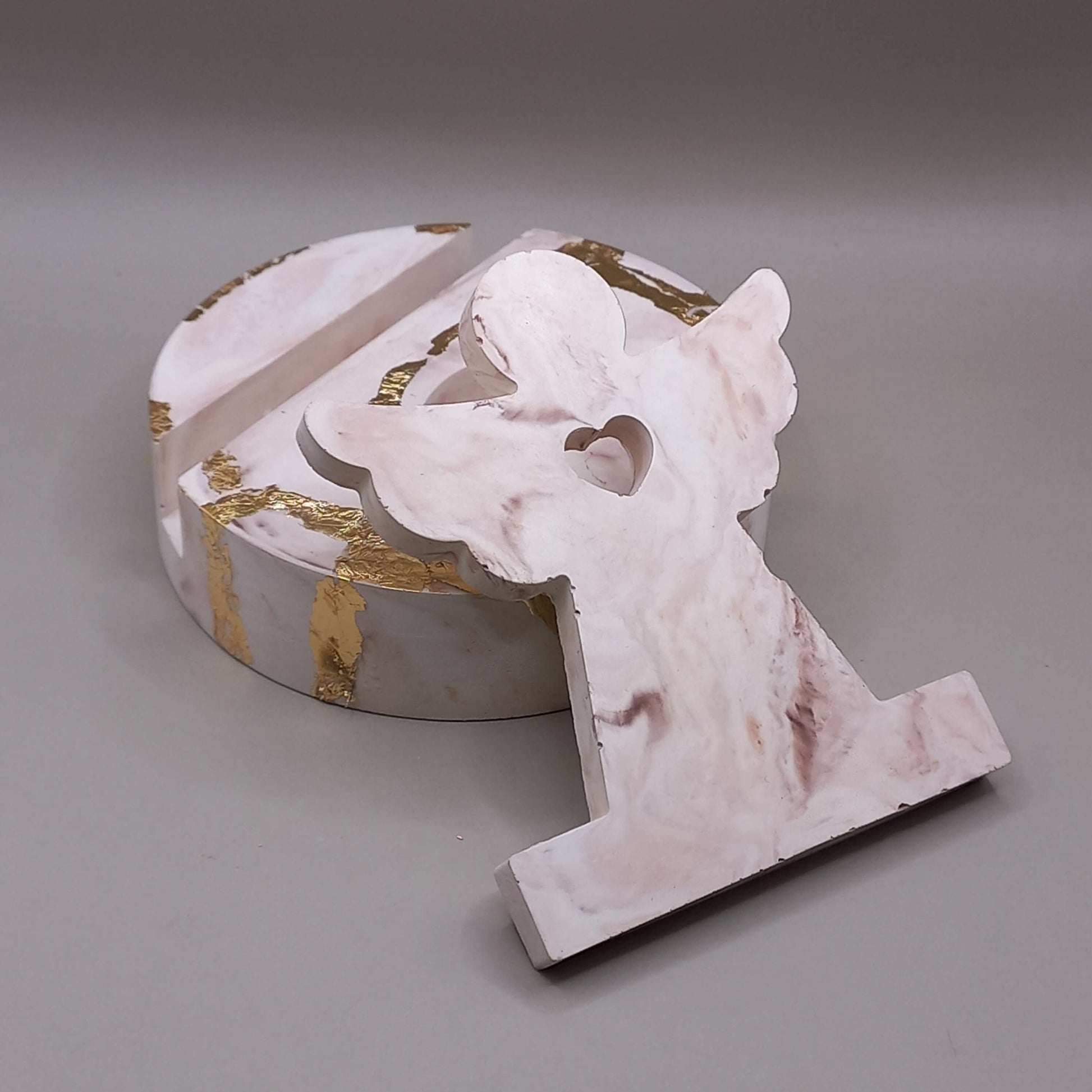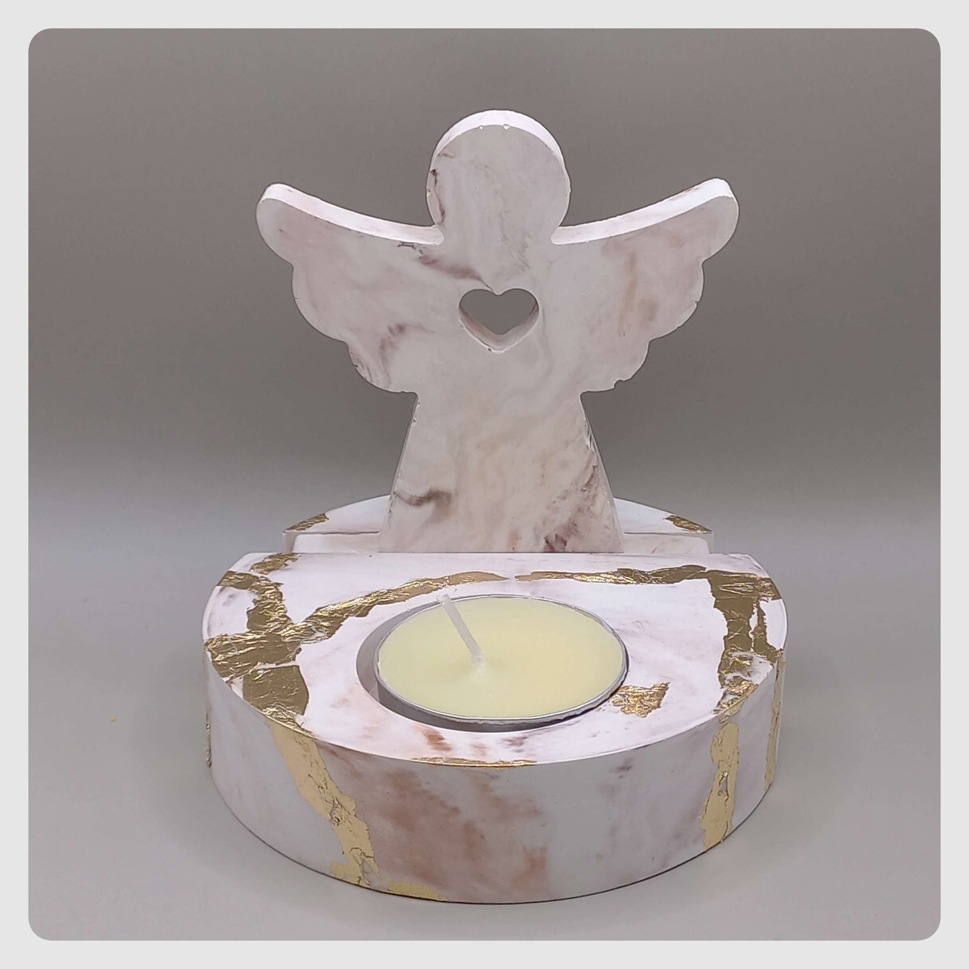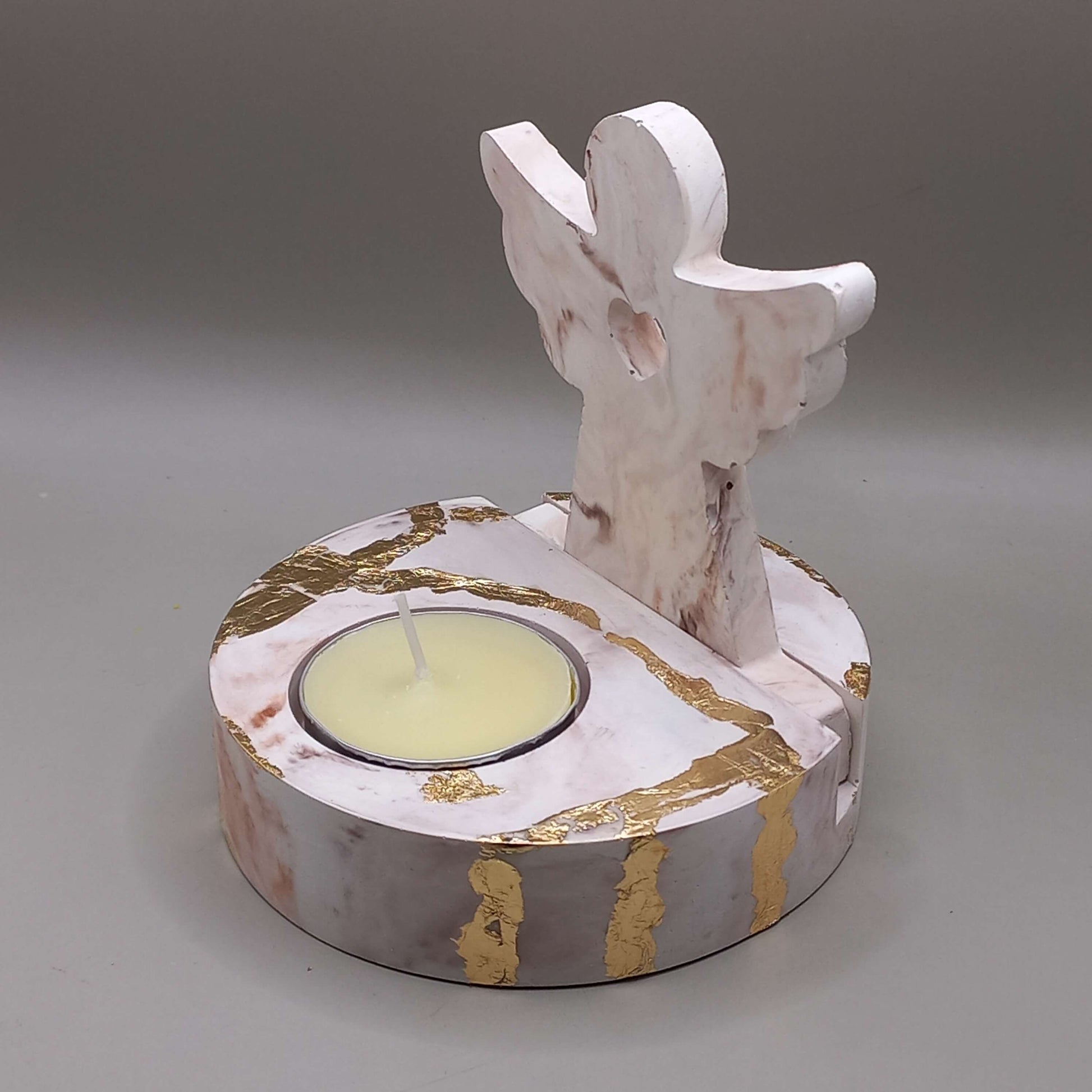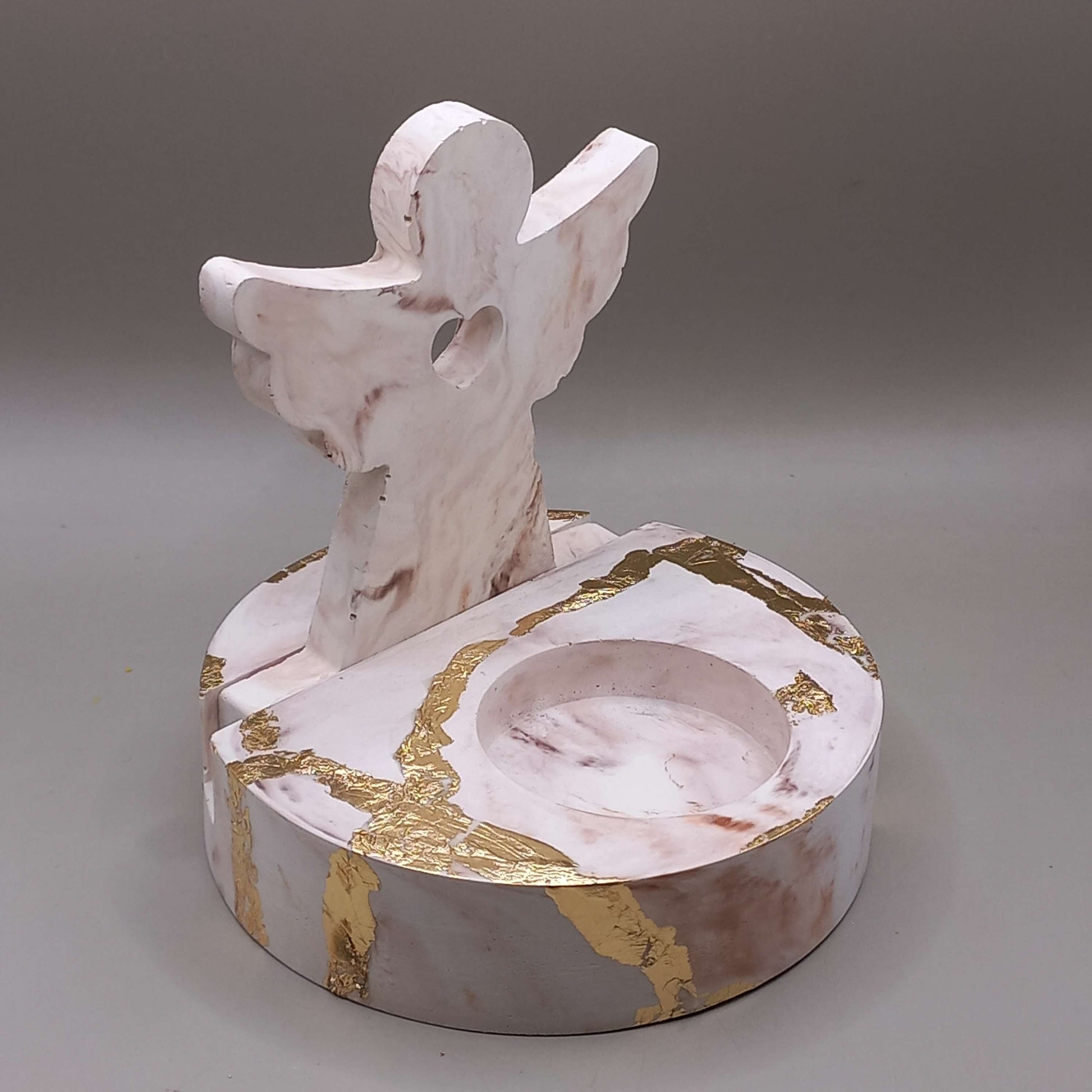 Χειροποίητη τσιμεντένια βάση για κεράκια ρεσώ, με διακοσμητικό αγγελάκι.