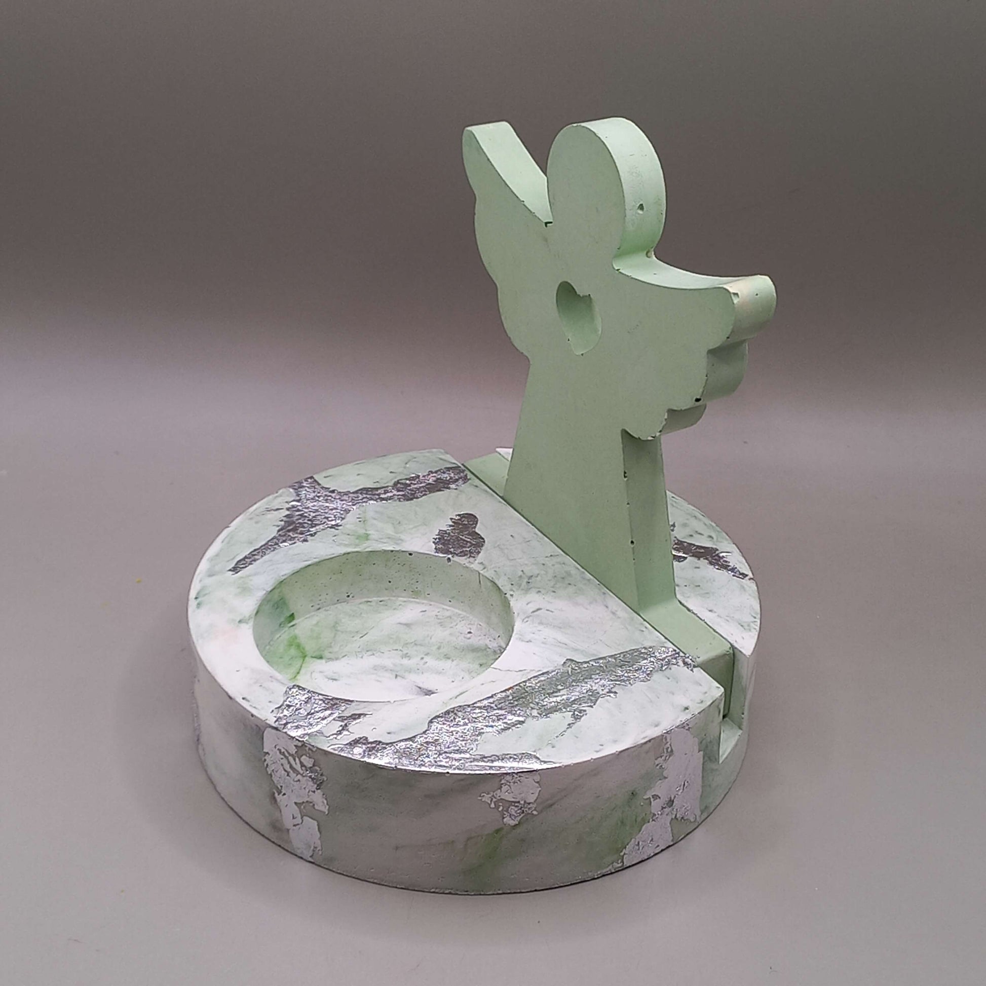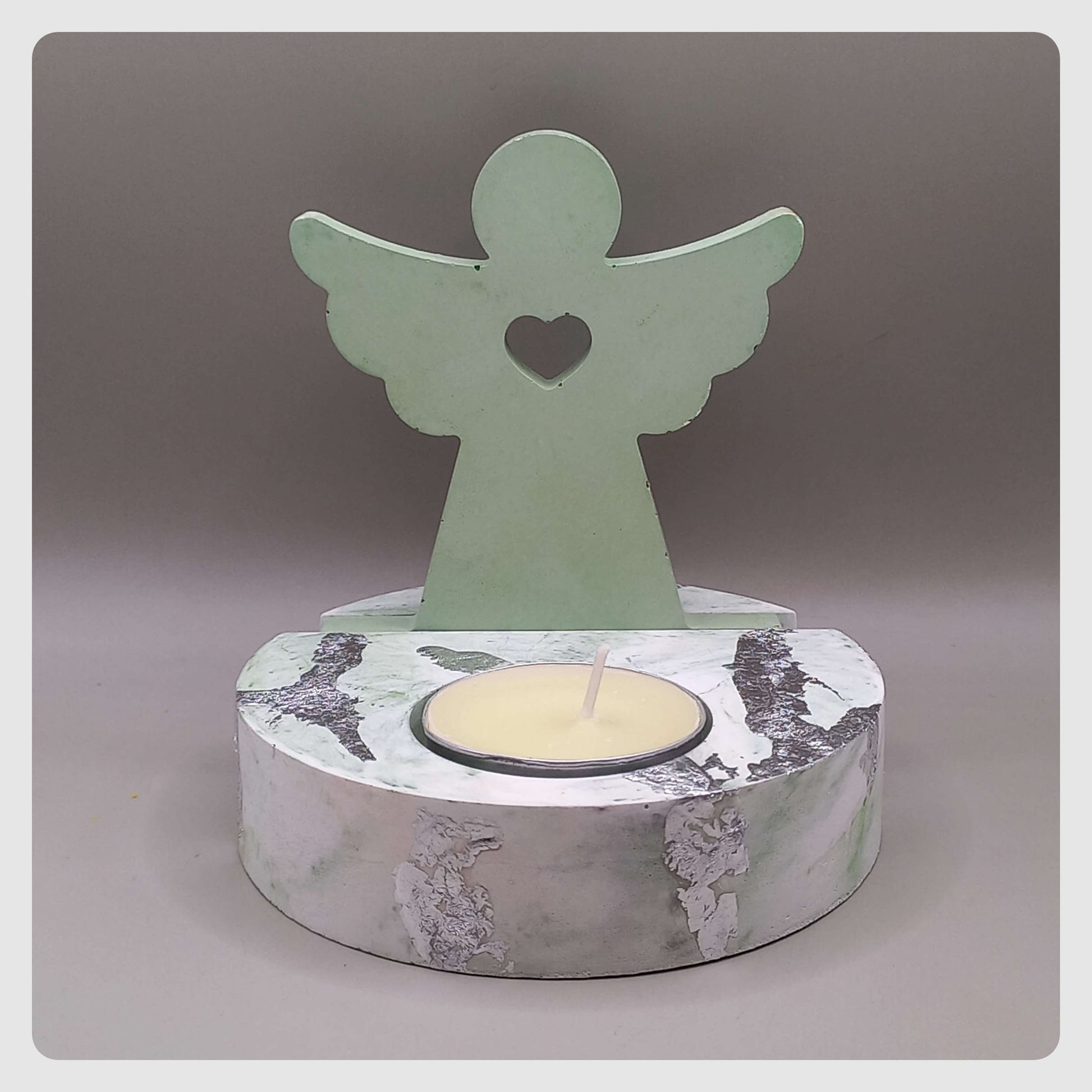 Χειροποίητη τσιμεντένια βάση για κεράκια ρεσώ, με διακοσμητικό αγγελάκι.