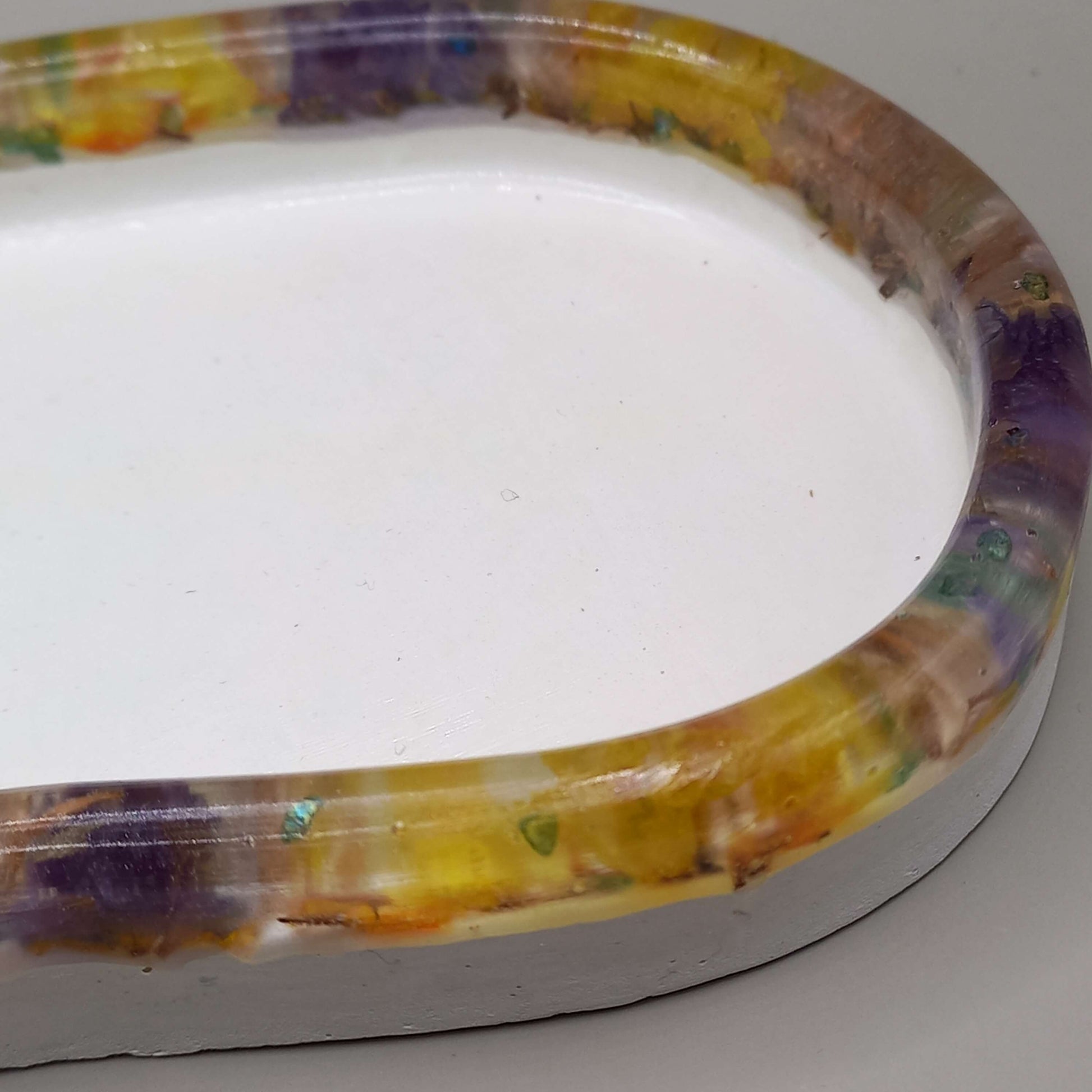 Χειροποίητος τσιμεντένιος δίσκος, σε λευκό χρώμα.