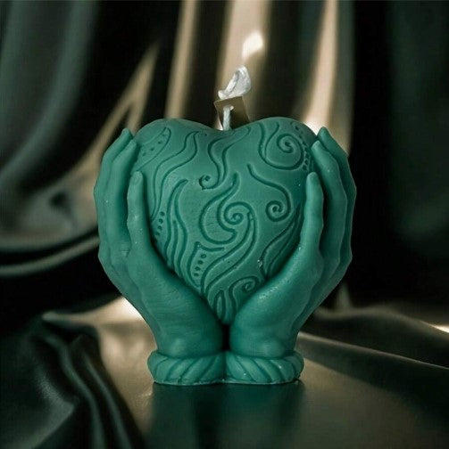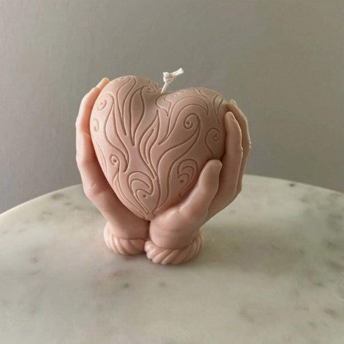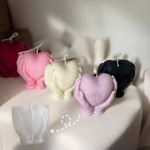 Καλούπι σιλικόνης καρδιά, ανάμεσα σε δύο χέρια.