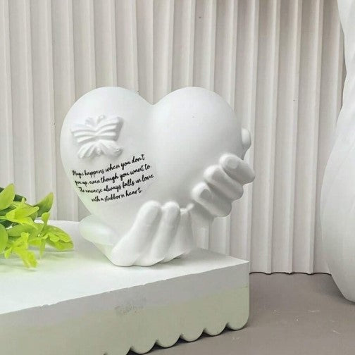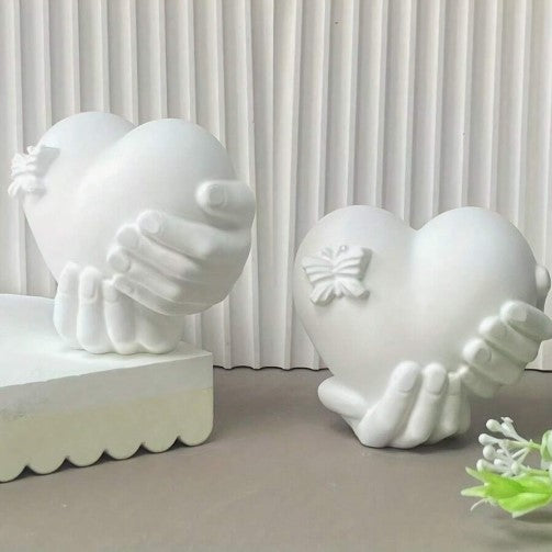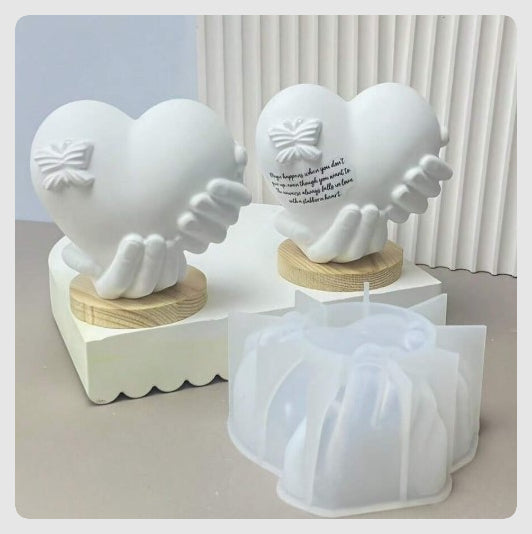 Καλούπι σιλικόνης καρδιά, που την κρατάνε δύο χέρια.