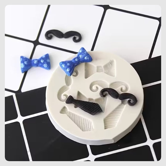 Καλούπι σιλικόνης με παπιγιόν, γραβάτα και μουστάκι.