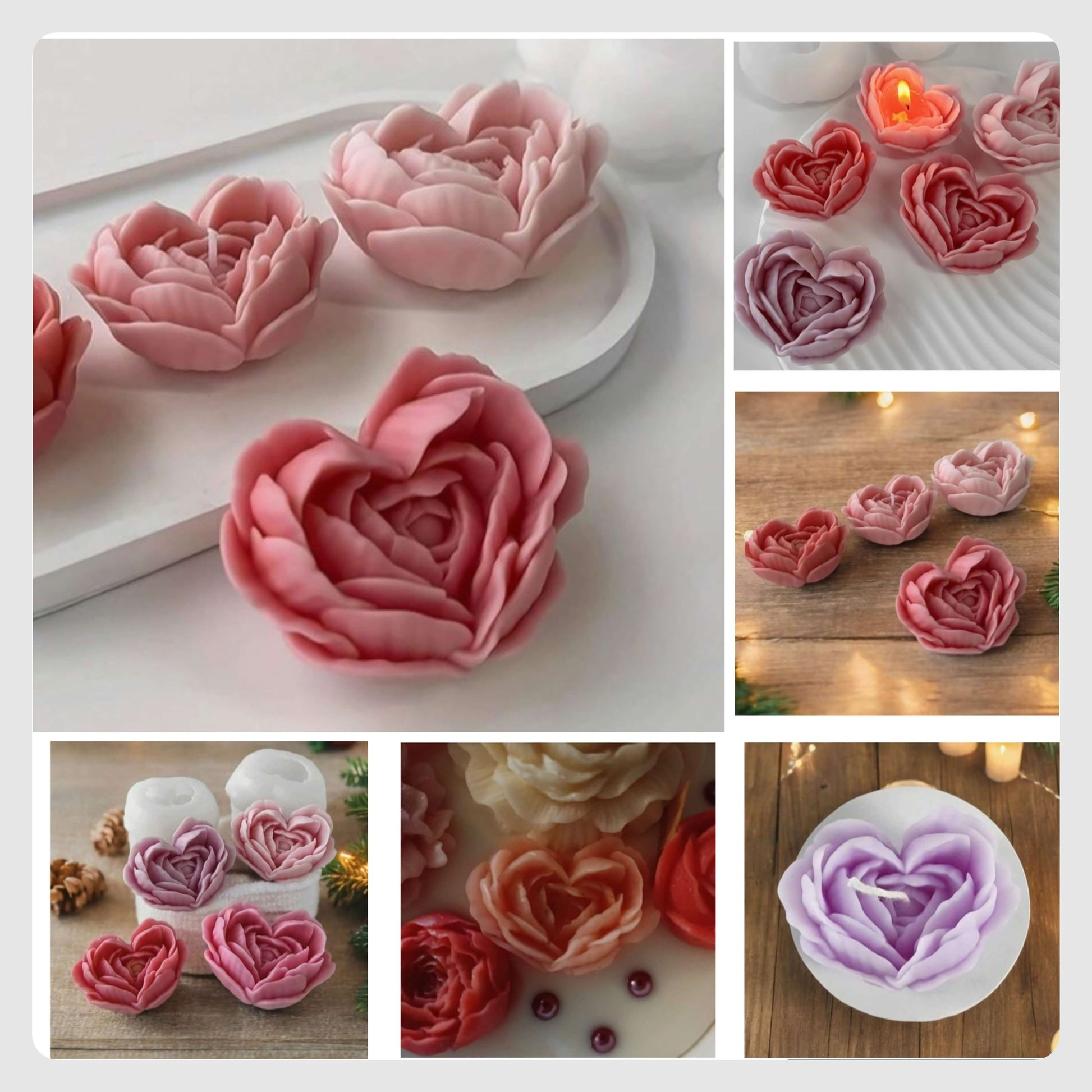 Καλούπια σιλικόνης τριαντάφυλλα, σε σχήμα καρδιάς.