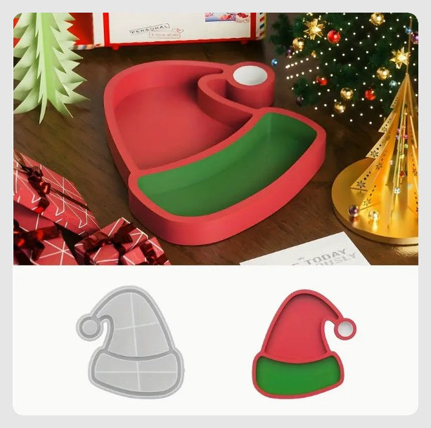 Καλούπι σιλικόνης για δίσκο σε σχήμα χριστουγεννιάτικου σκούφου.