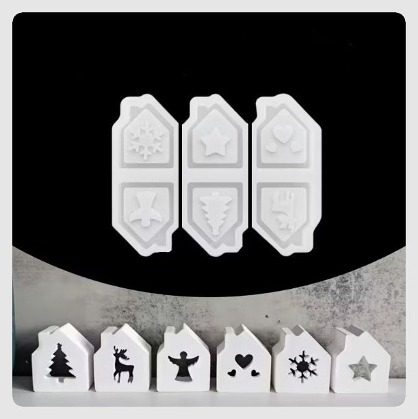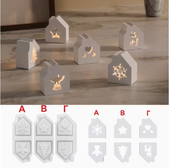 Διπλό καλούπι σπιτάκι, με χριστουγεννιάτικο σχέδιο.