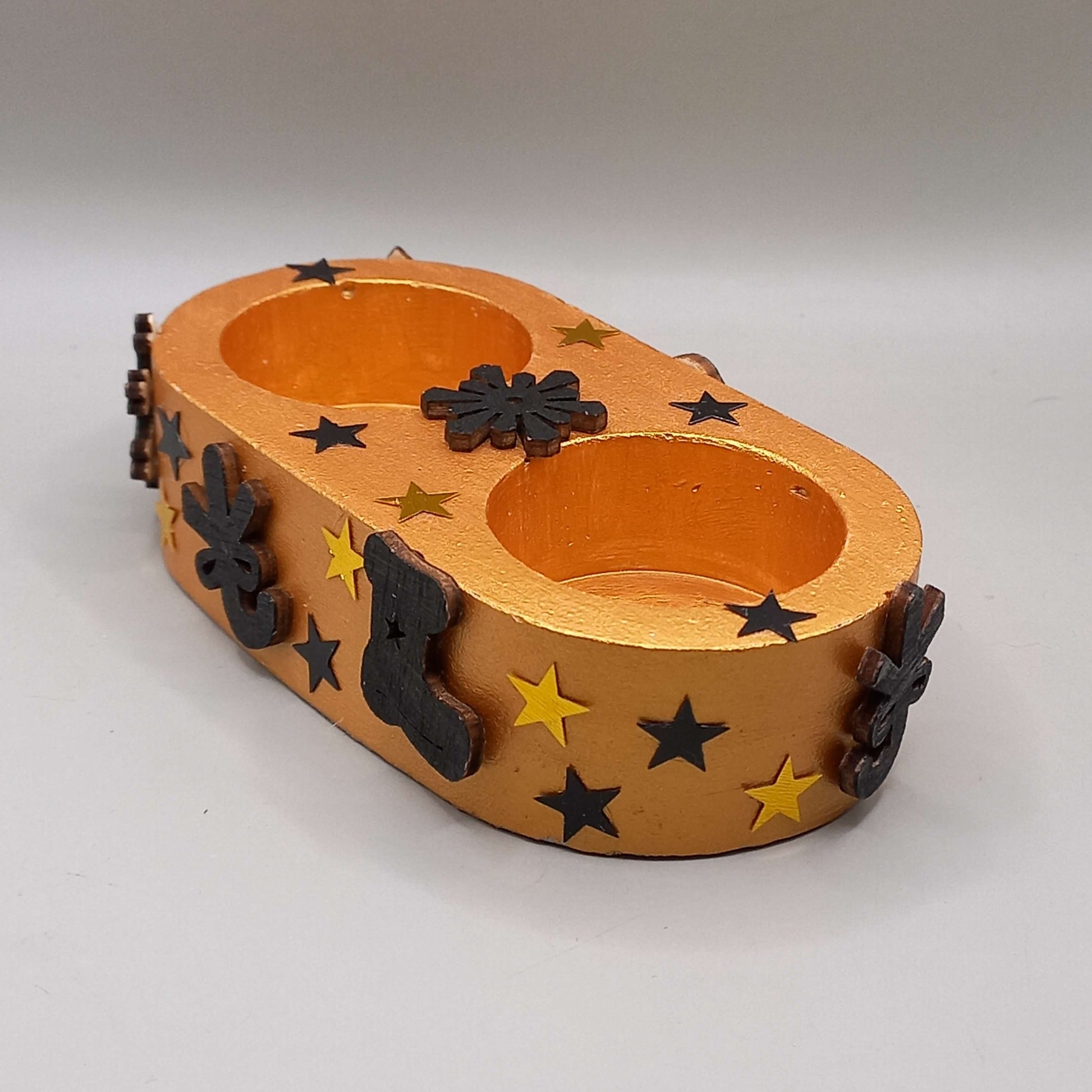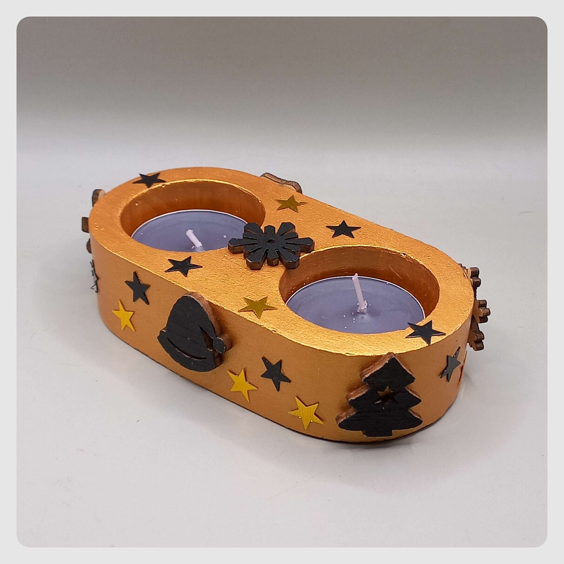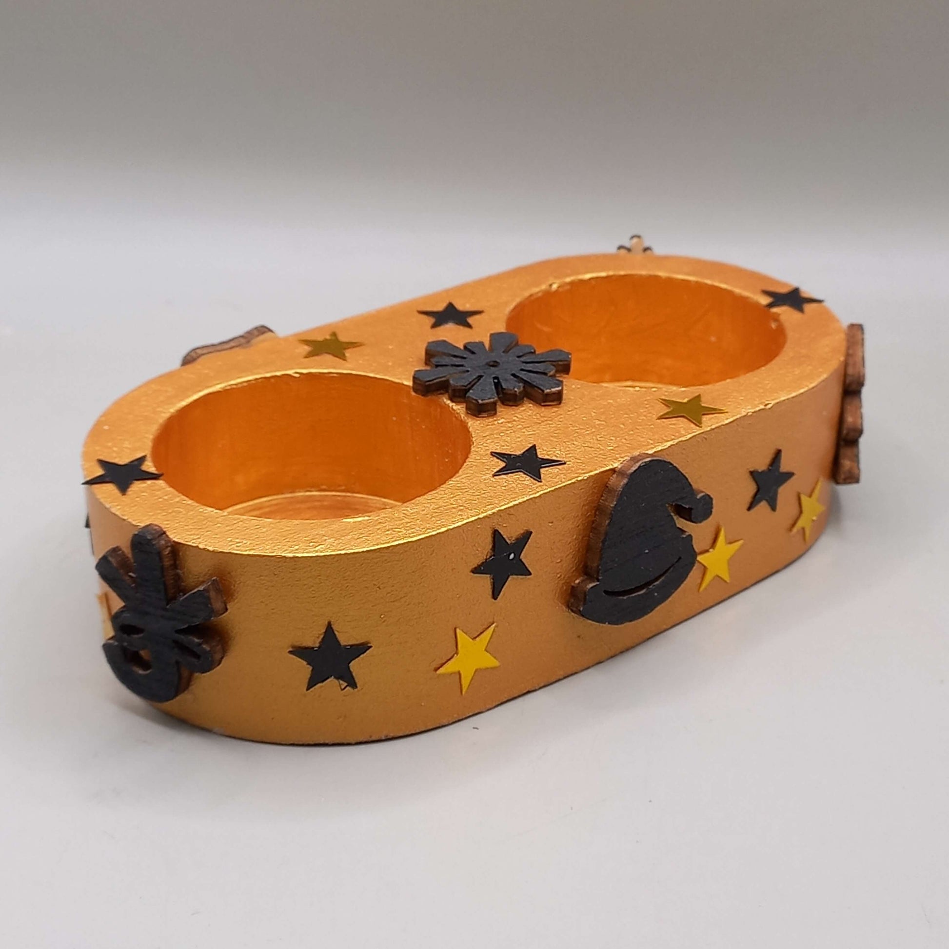 Χειροποίητη διπλή βάση για ρεσώ σε χρυσό, με ξύλινα στοιχεία σε μαύρο χρώμα.