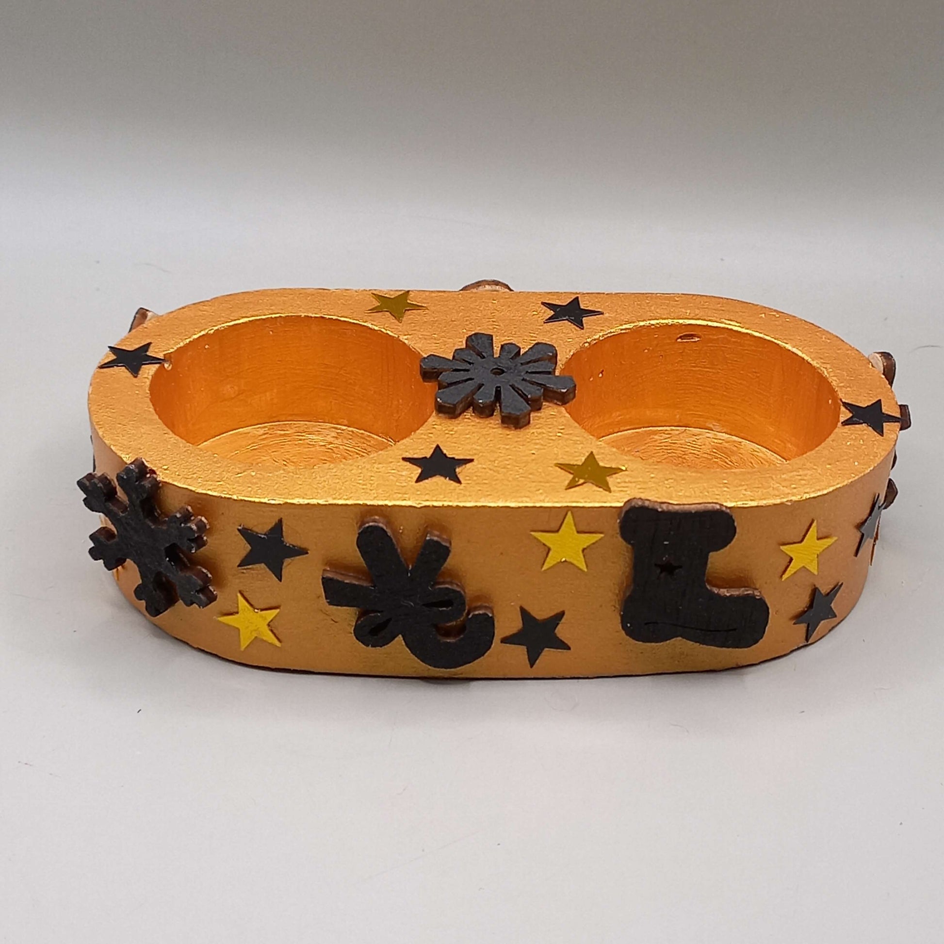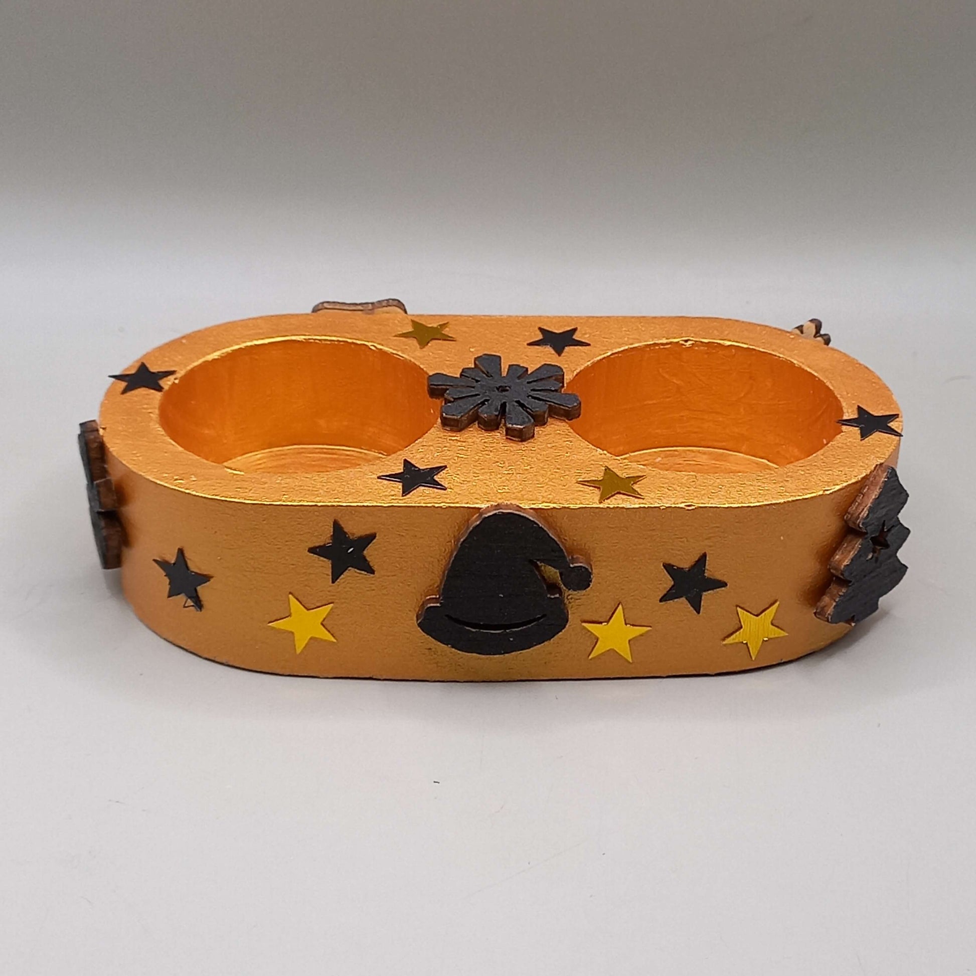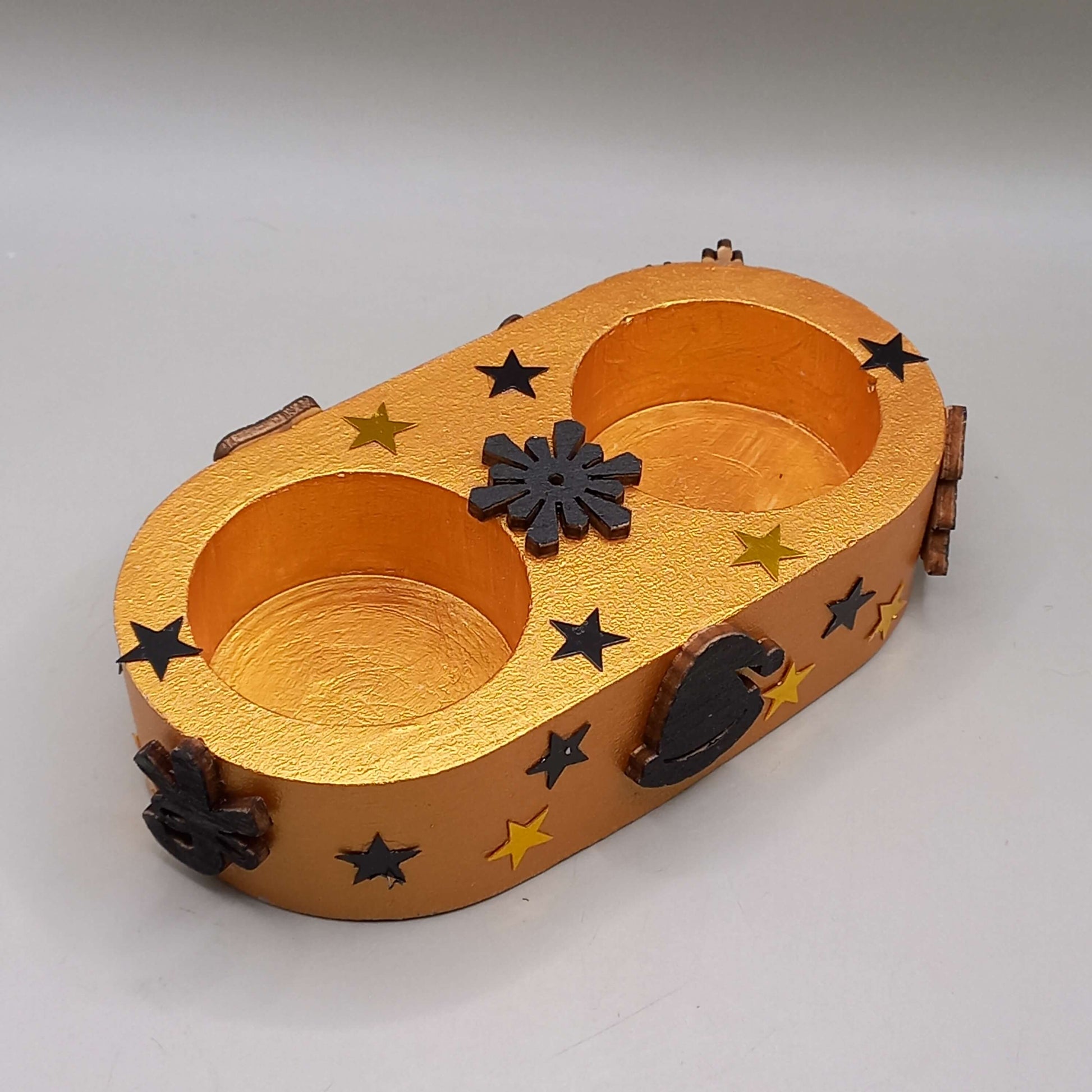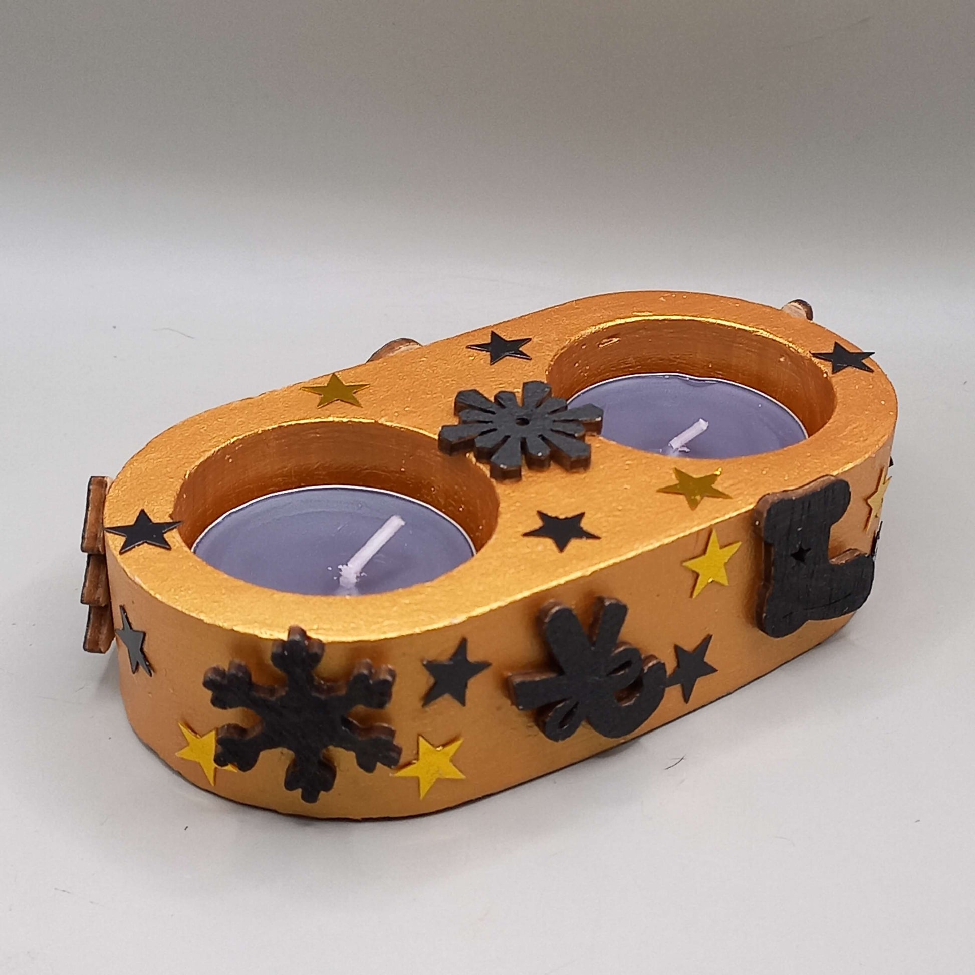 Χειροποίητη διπλή βάση για ρεσώ σε χρυσό, με ξύλινα στοιχεία σε μαύρο χρώμα.