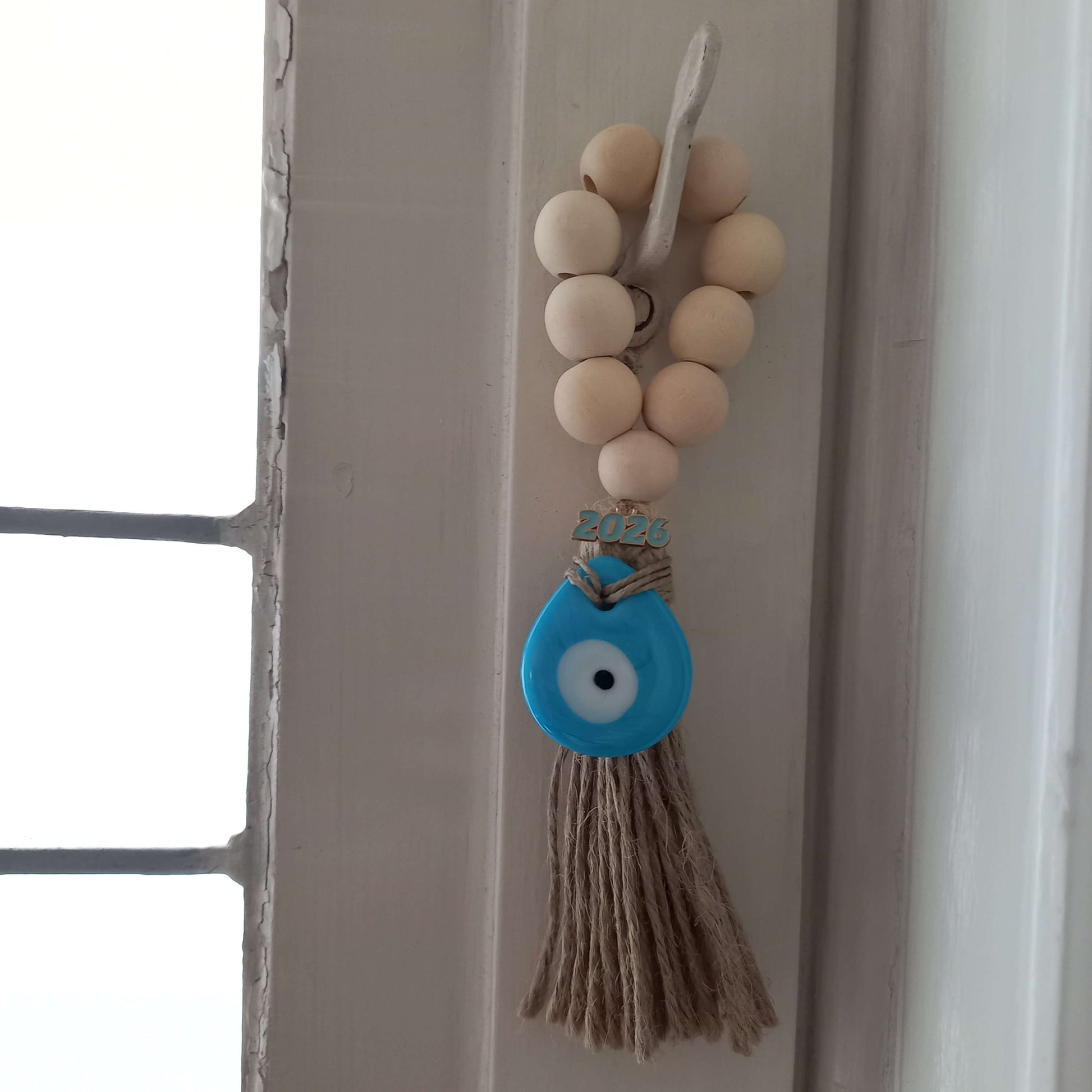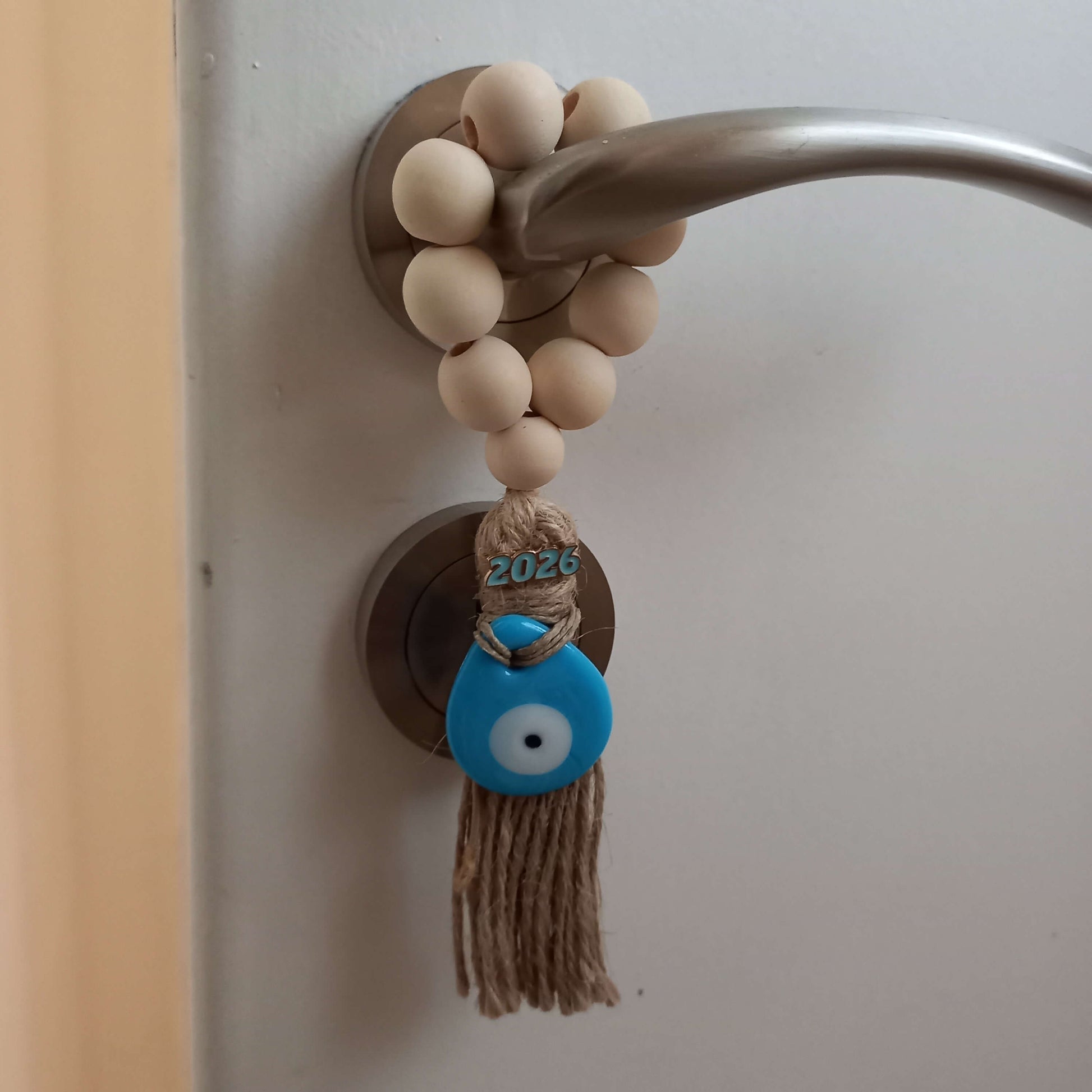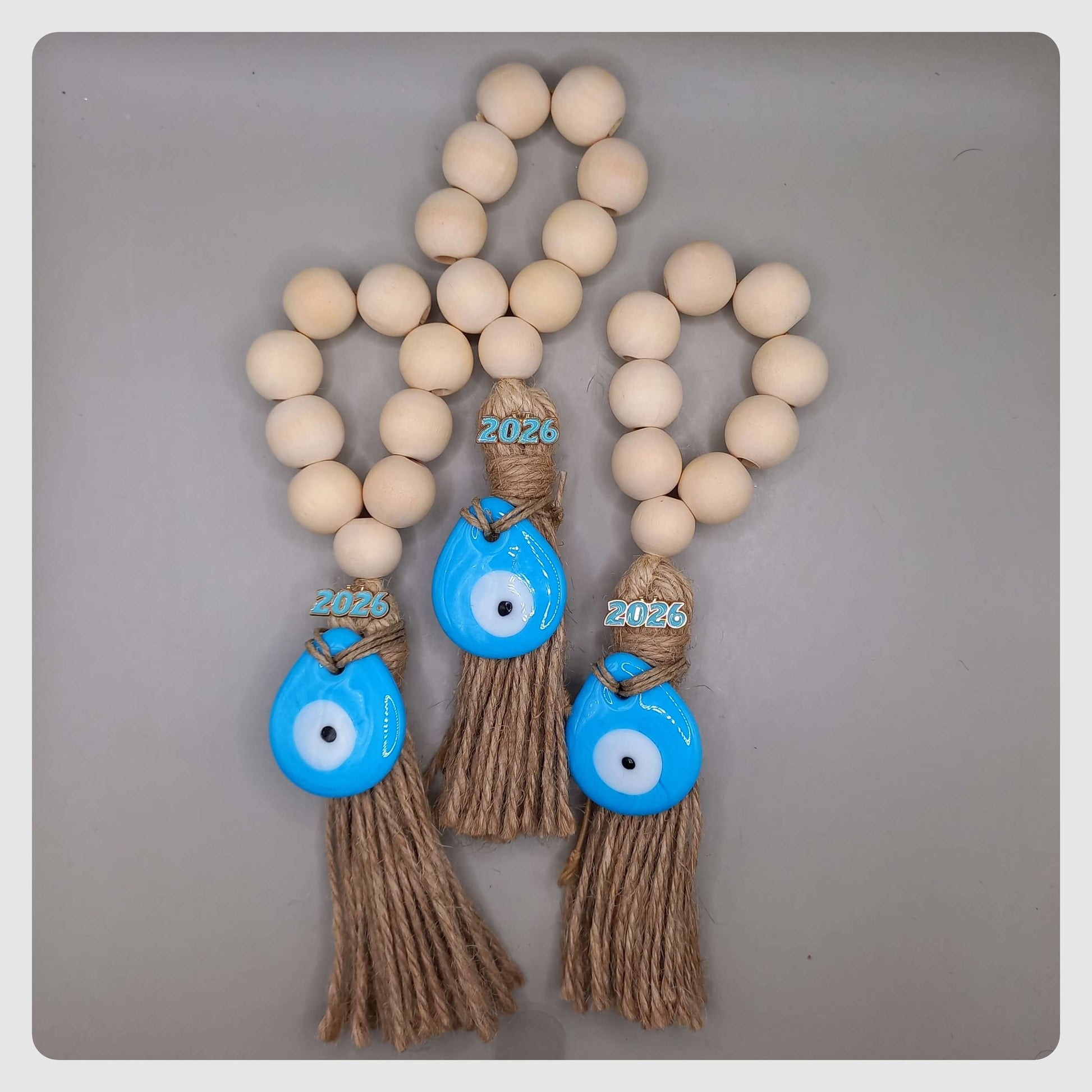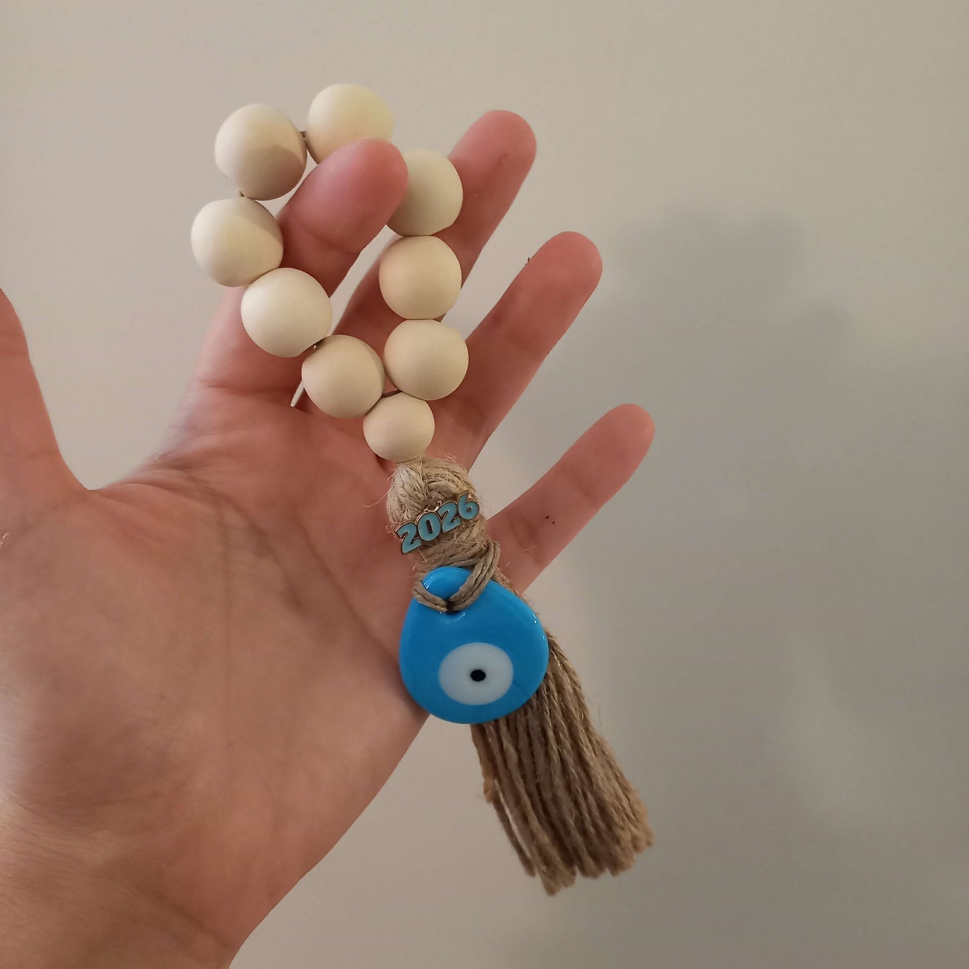 Ξύλινες χάντρες σε φυσικό χρώμα και σχοινί.