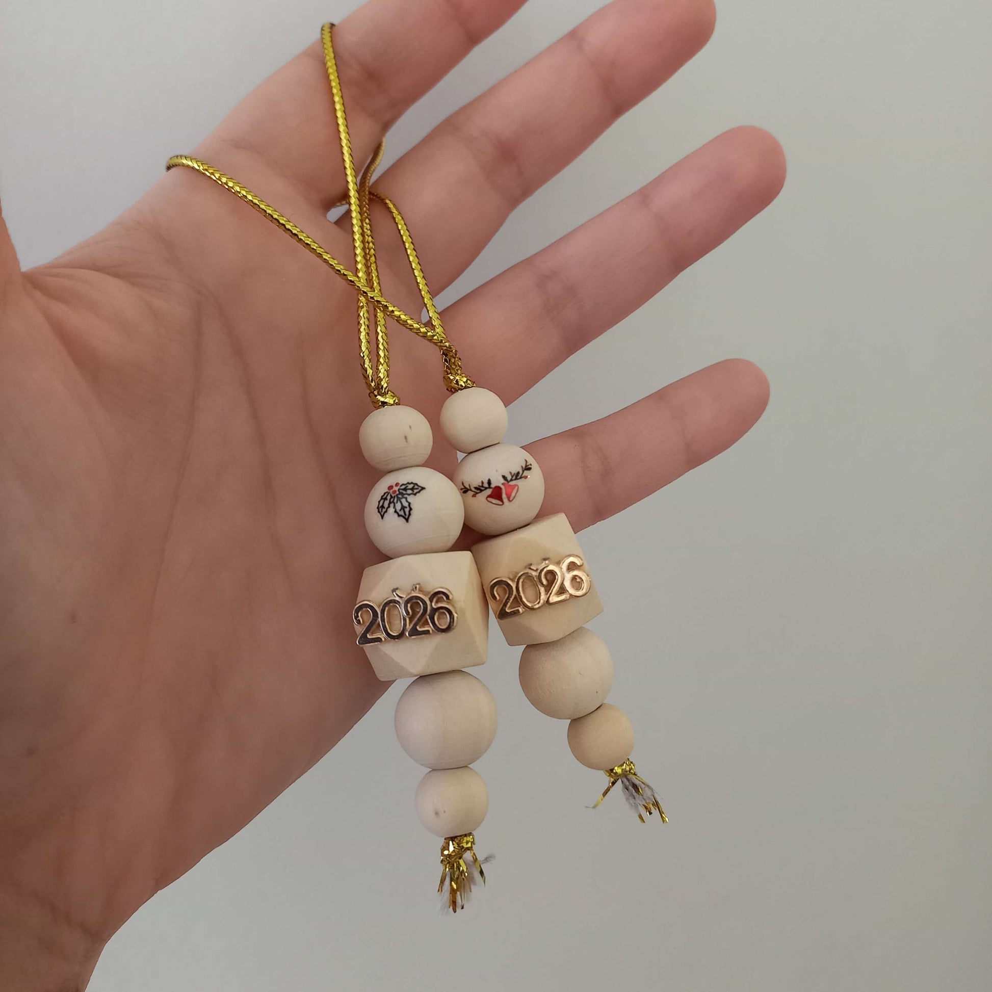 Ξύλινες χάντρες σε φυσικό χρώμα.